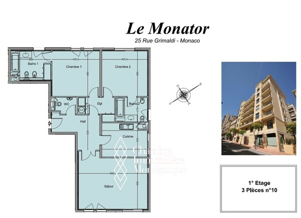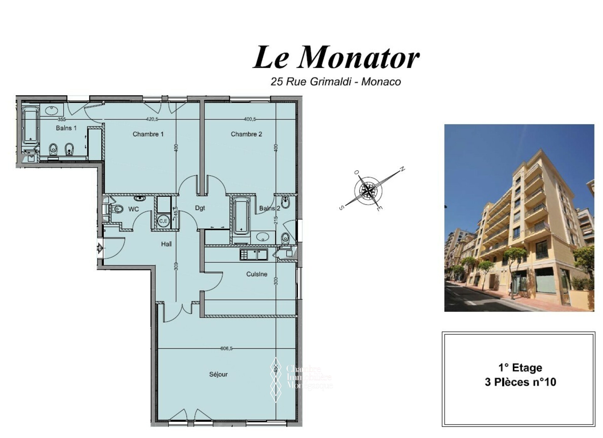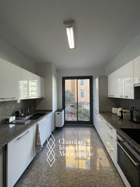 Très bel appartement de 3 pièces situé au premier étage d’une résidence de standing récente au cœur du quartier de la Condamine, proche du Port et de tous commerces et restaurants.