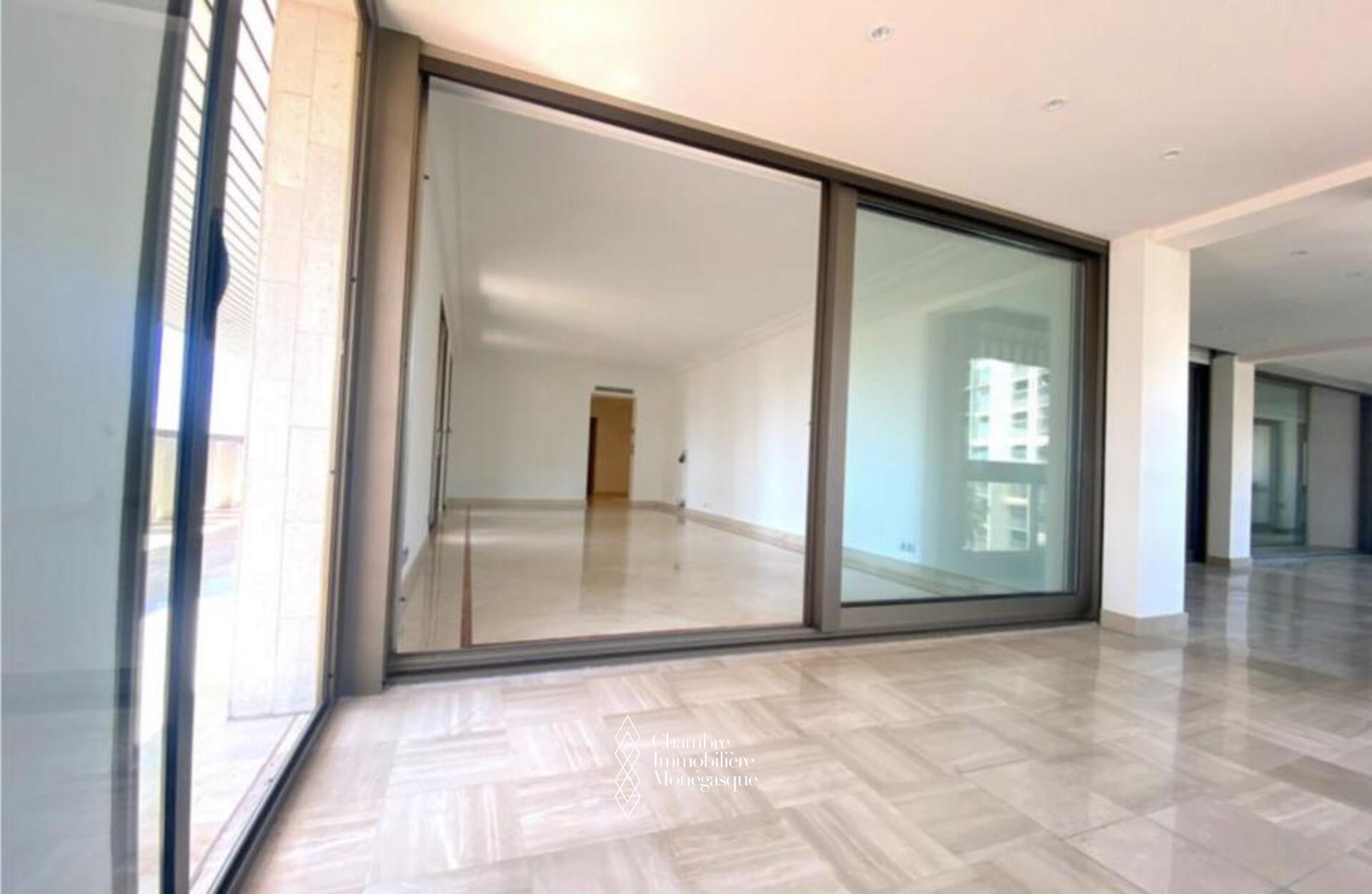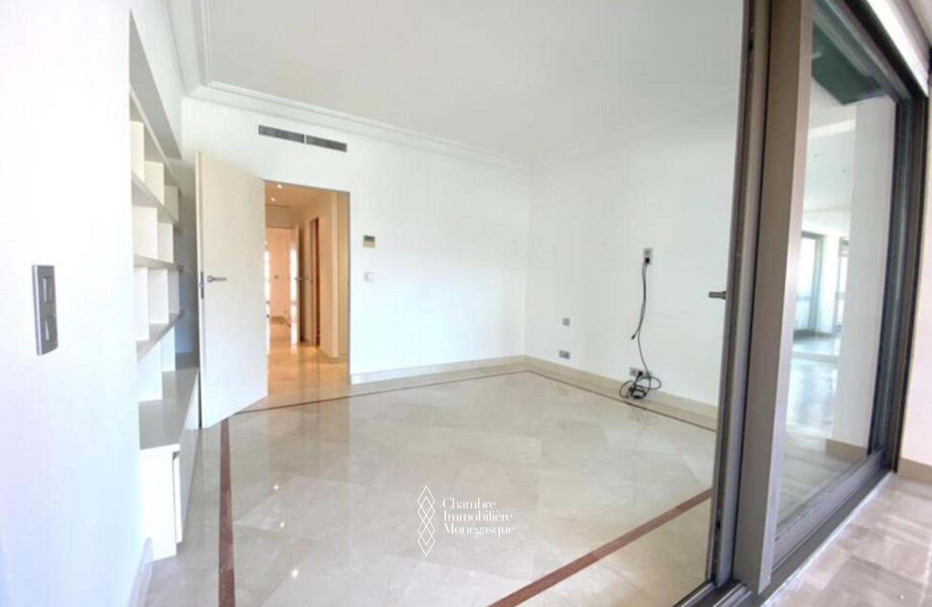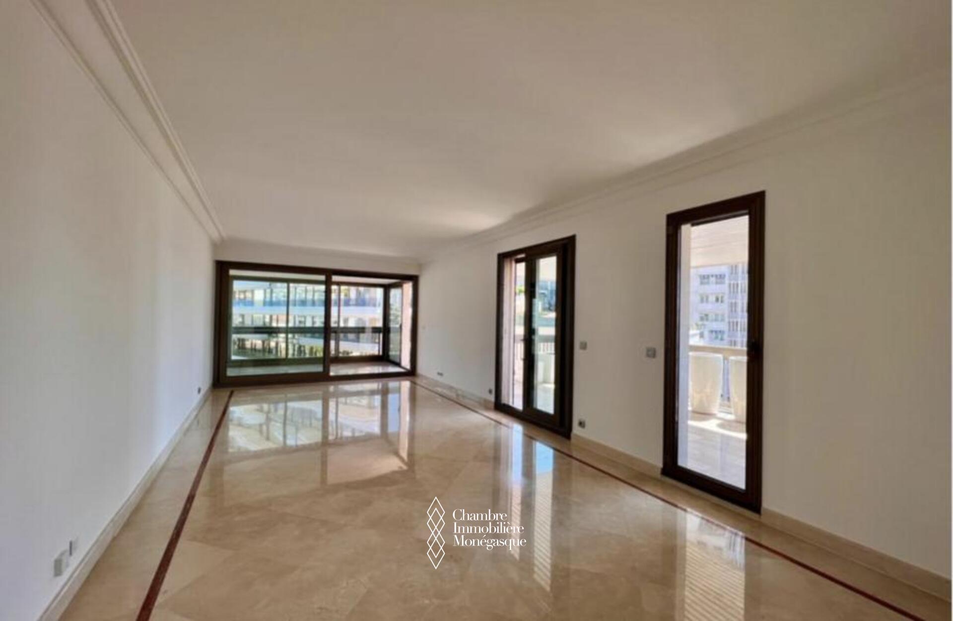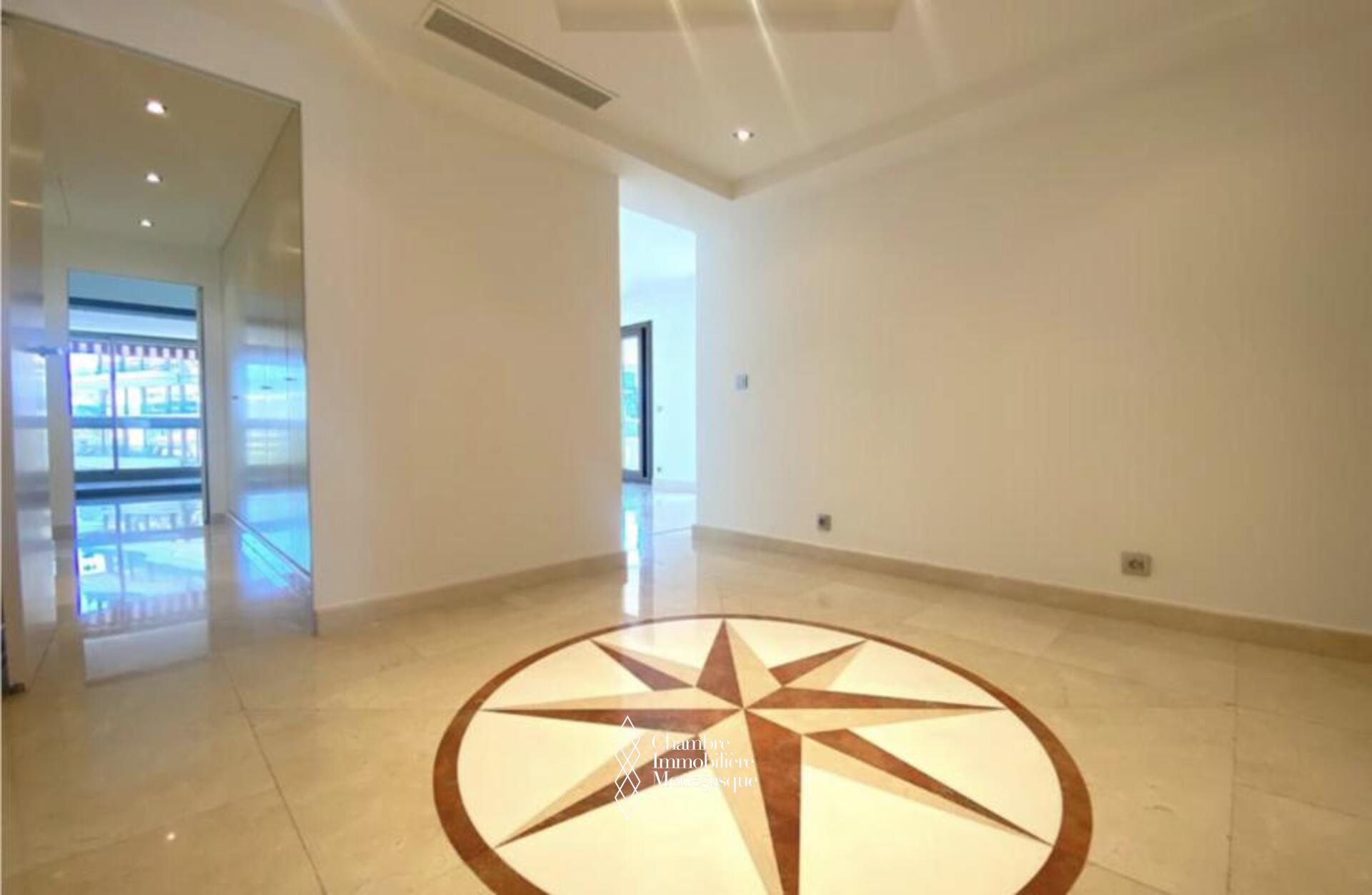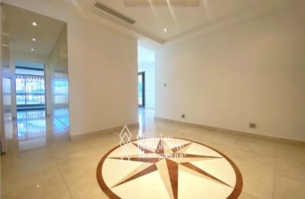 Cette propriété élégante et impeccablement entretenue est située dans le prestigieux Carré D'or. Il dispose de trois chambres spacieuses, dont une luxueuse suite parentale avec une salle de bains aux dimensions généreuses. Deux des chambres offrent une vue captivante sur les jardins entourant la place du casino, tandis que le salon et la troisième chambre donnent sur le port Hercule. L'appartement offre un grand espace de vie et dispose de vastes terrasses soigneusement conçues pour offrir une protection contre le soleil et le vent.