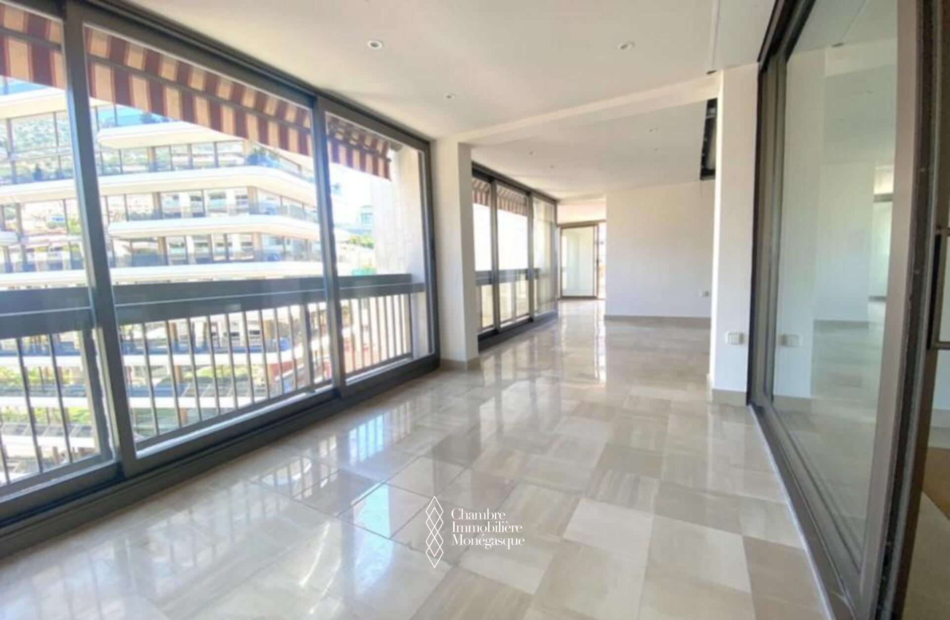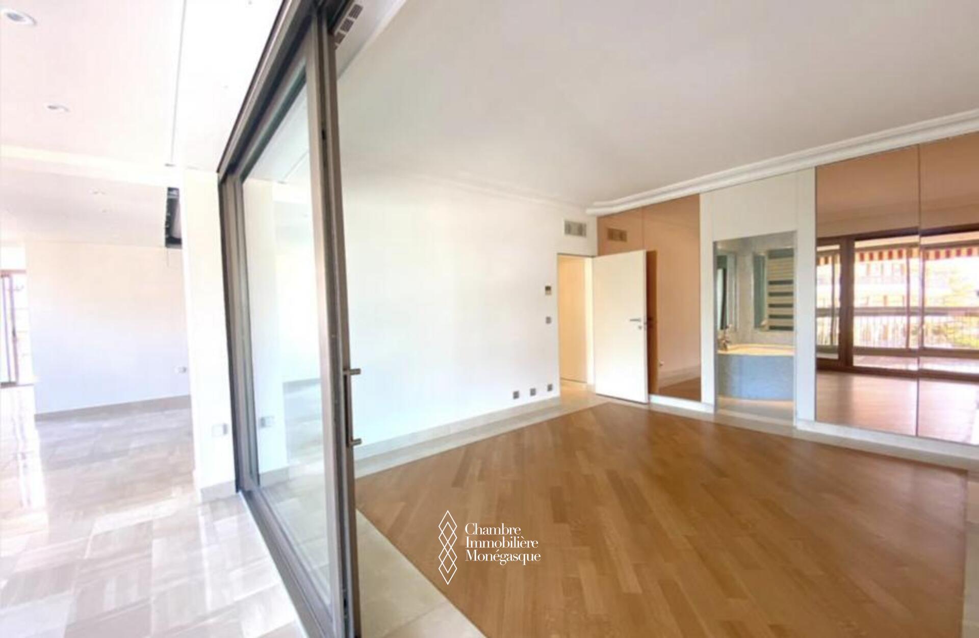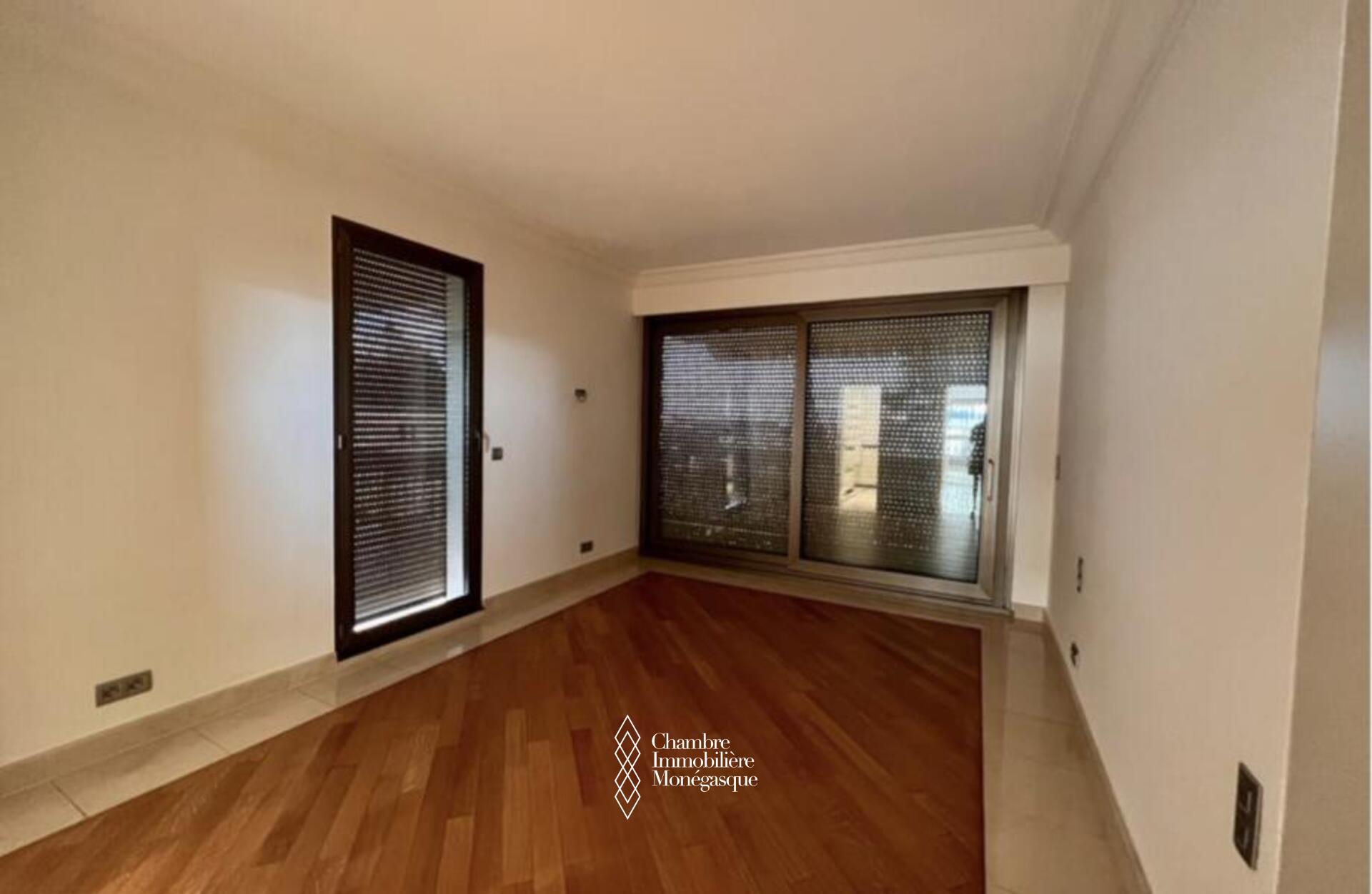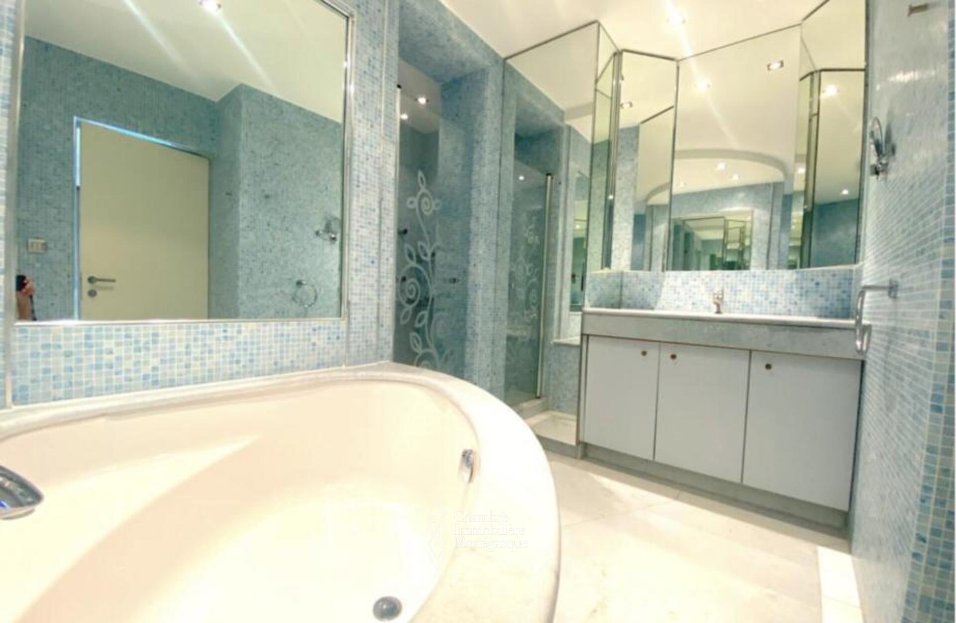 Cette propriété élégante et impeccablement entretenue est située dans le prestigieux Carré D'or. Il dispose de trois chambres spacieuses, dont une luxueuse suite parentale avec une salle de bains aux dimensions généreuses. Deux des chambres offrent une vue captivante sur les jardins entourant la place du casino, tandis que le salon et la troisième chambre donnent sur le port Hercule. L'appartement offre un grand espace de vie et dispose de vastes terrasses soigneusement conçues pour offrir une protection contre le soleil et le vent.