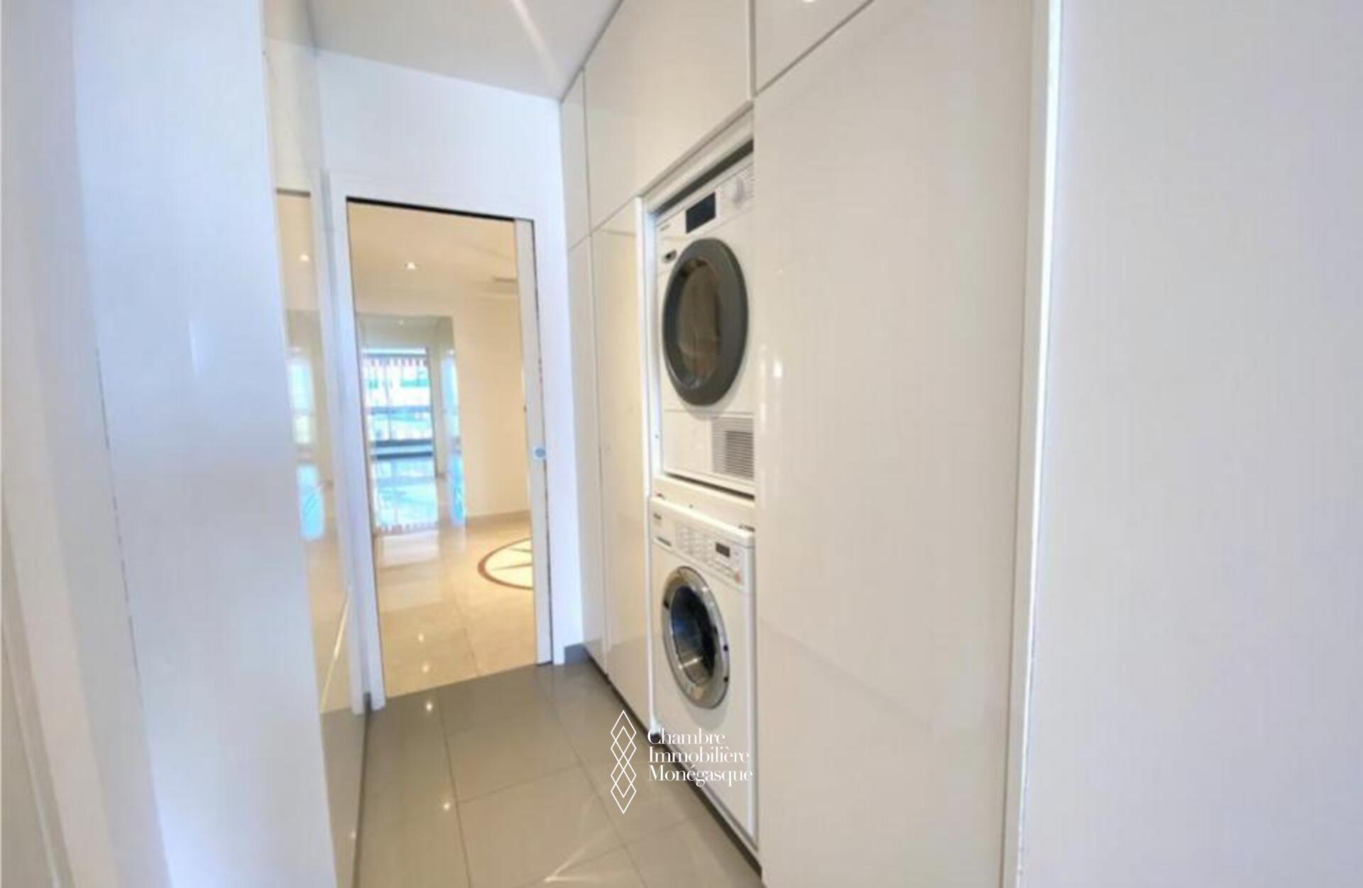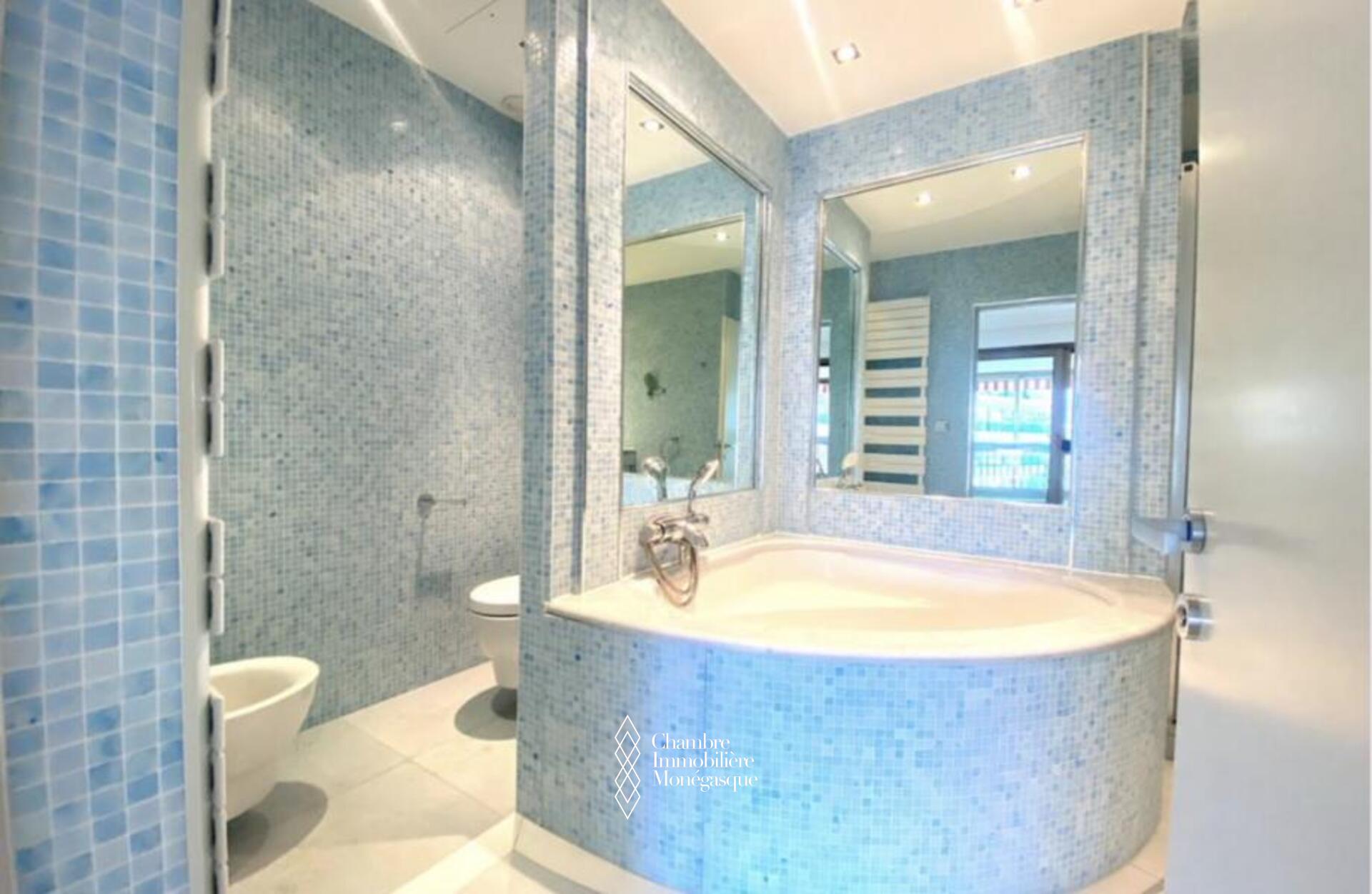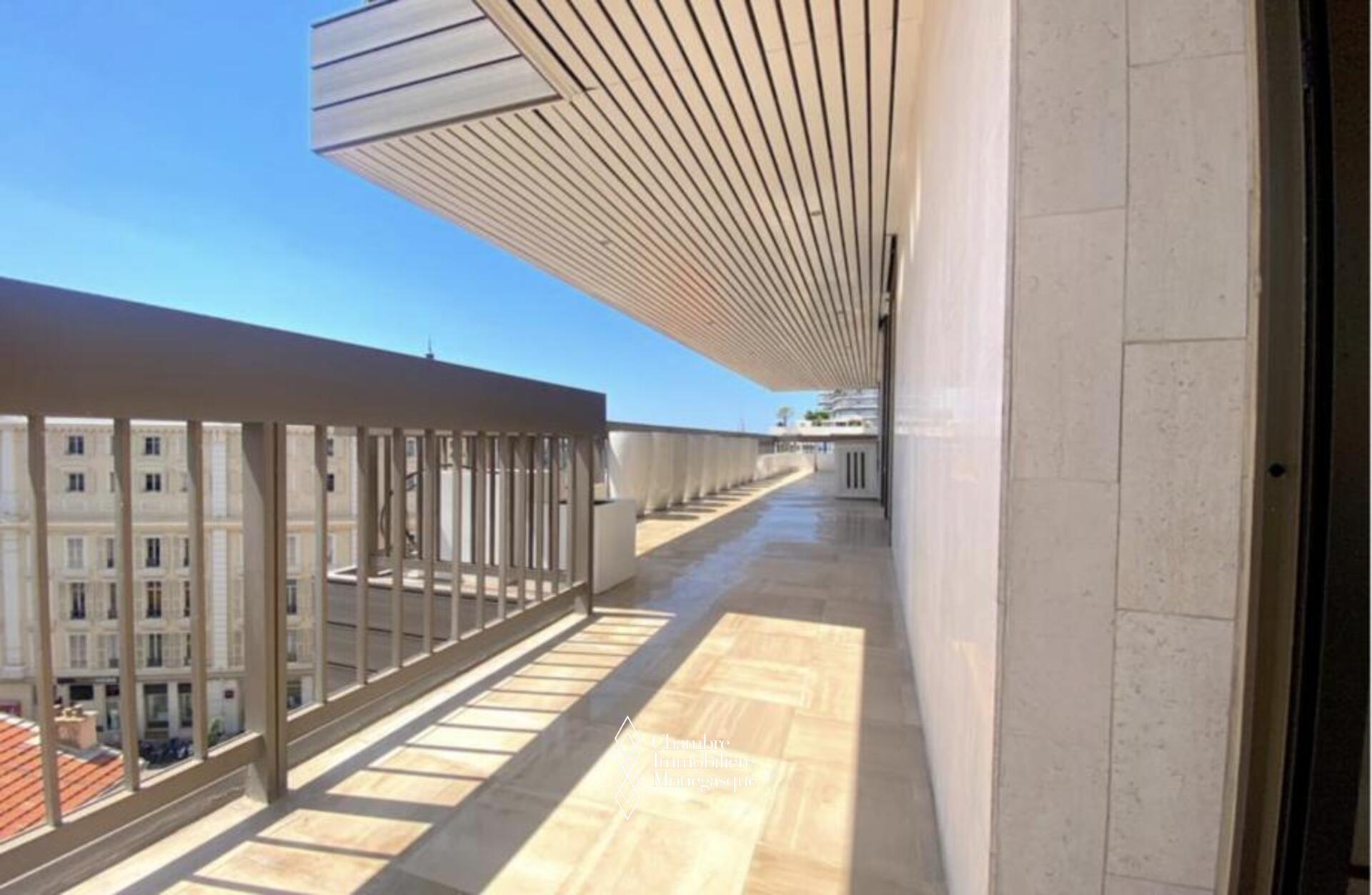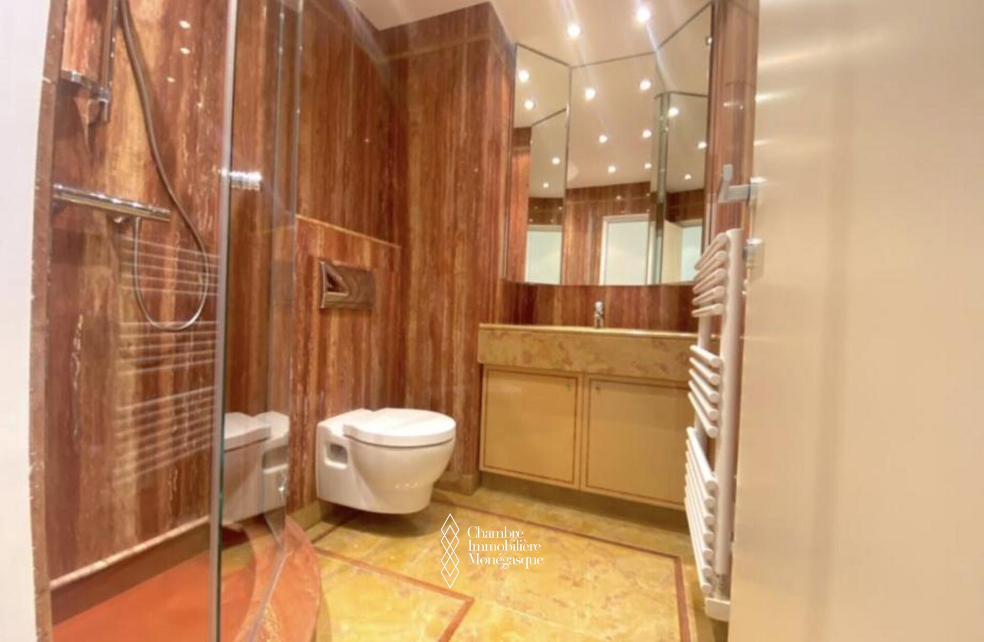 Cette propriété élégante et impeccablement entretenue est située dans le prestigieux Carré D'or. Il dispose de trois chambres spacieuses, dont une luxueuse suite parentale avec une salle de bains aux dimensions généreuses. Deux des chambres offrent une vue captivante sur les jardins entourant la place du casino, tandis que le salon et la troisième chambre donnent sur le port Hercule. L'appartement offre un grand espace de vie et dispose de vastes terrasses soigneusement conçues pour offrir une protection contre le soleil et le vent.