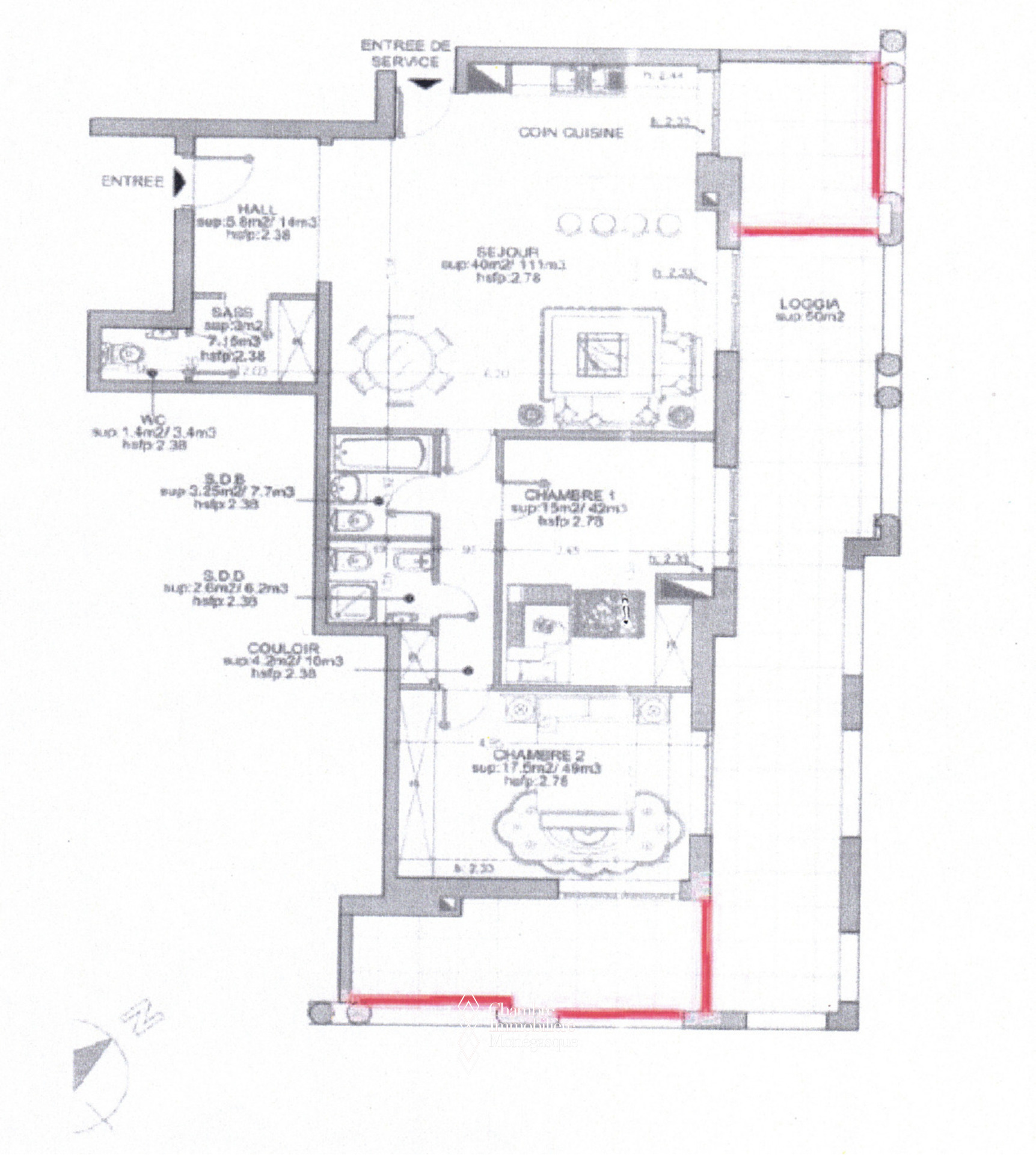 È composto da un ampio soggiorno doppio con cucina a vista e isola centrale, oltre a una zona pranzo sulla loggia completamente chiusa, due eleganti camere da letto con armadi a muro, ciascuna con accesso diretto alle logge. La camera da letto principale è chiusa per creare una zona studio. Lo spazio notte è completato da un bagno con servizi, un bagno con doccia e un bagno per gli ospiti.