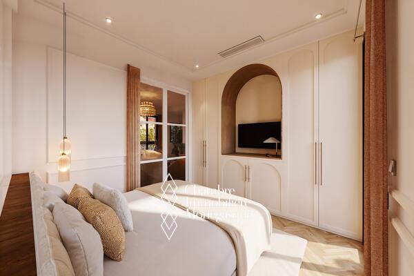 L’appartamento è composto da un soggiorno con zona pranzo e cucina americana attrezzata, il tutto aperto su una deliziosa terrazza dove è possibile godersi un pasto sotto il sole del Mediterraneo. Due camere da letto, ciascuna con il proprio bagno o sala doccia, si aprono su due terrazze, di cui una veranda. Venduto ammobiliato.