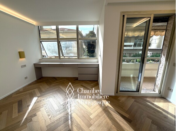 Appartamento familiare completamente ristrutturato nel cuore di La Condamine, con parcheggio e cantina, possibilità di uso misto.
