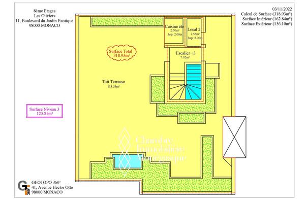Questo splendido attico su tre livelli, con una superficie di 319 m² di cui 156 m² di terrazza, offre ampi spazi e una splendida luminosità.