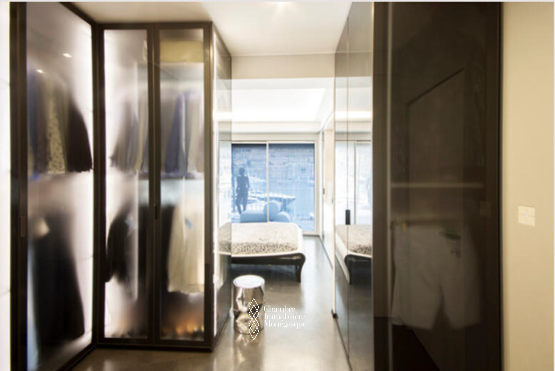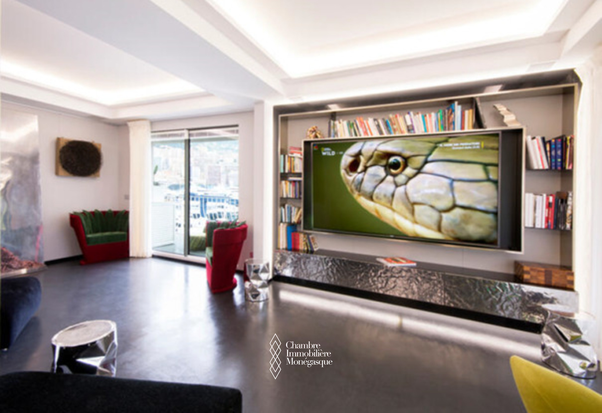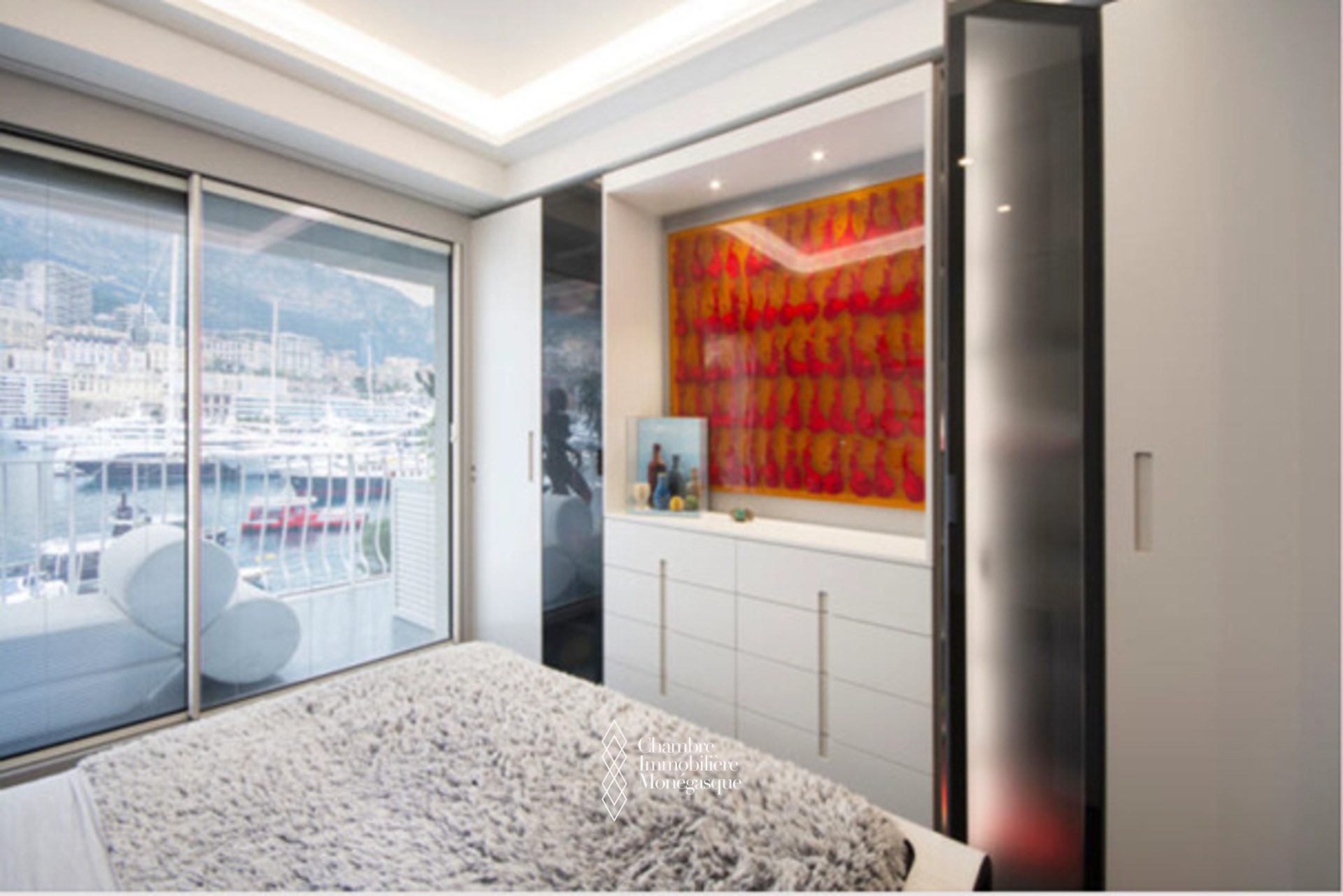 L'appartamento di 4 locali è formato dall'unione di due unità. È stato recentemente oggetto di ampi lavori di ristrutturazione. L'arredamento in stile contemporaneo include tutti gli infissi su misura realizzati da artigiani italiani, sistema di allarme e telecamere, riscaldamento ed aria condizionata autonomi, riscaldamento esterno che consente di godere della terrazza tutto l'anno, impianto stereo Sonos. Distribuzione: ingresso con guardaroba, soggiorno, sala da pranzo, cucina, ripostiglio, bagno per gli ospiti, balcone con vista su Fort Antoine, balcone con vista su Port Hercule e sulla città, 3 camere da letto, 3 bagni, cabina armadio, numerosi armadi a muro. Cantina e box auto inclusi.