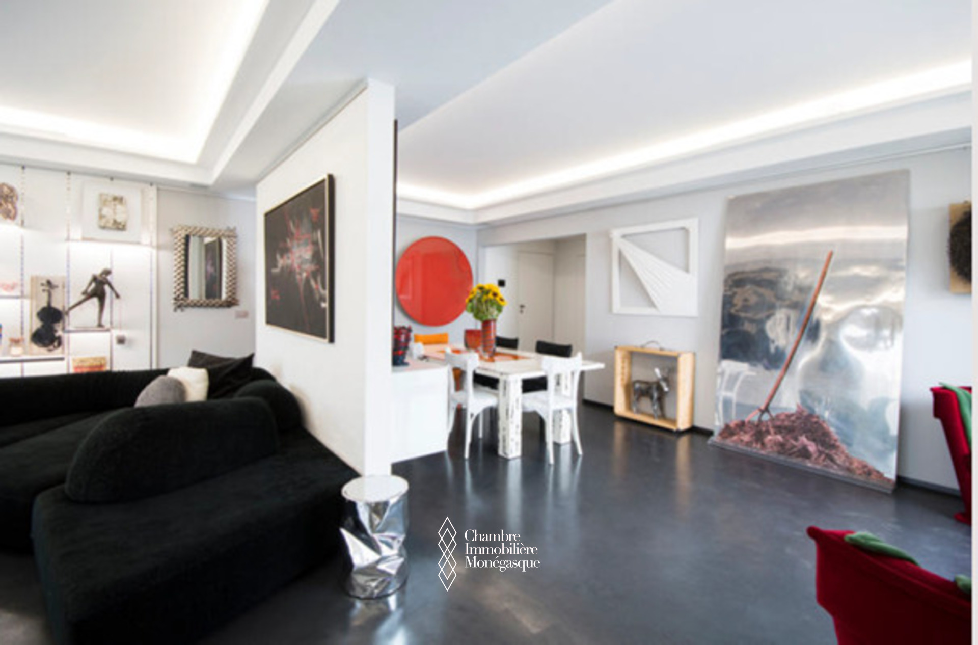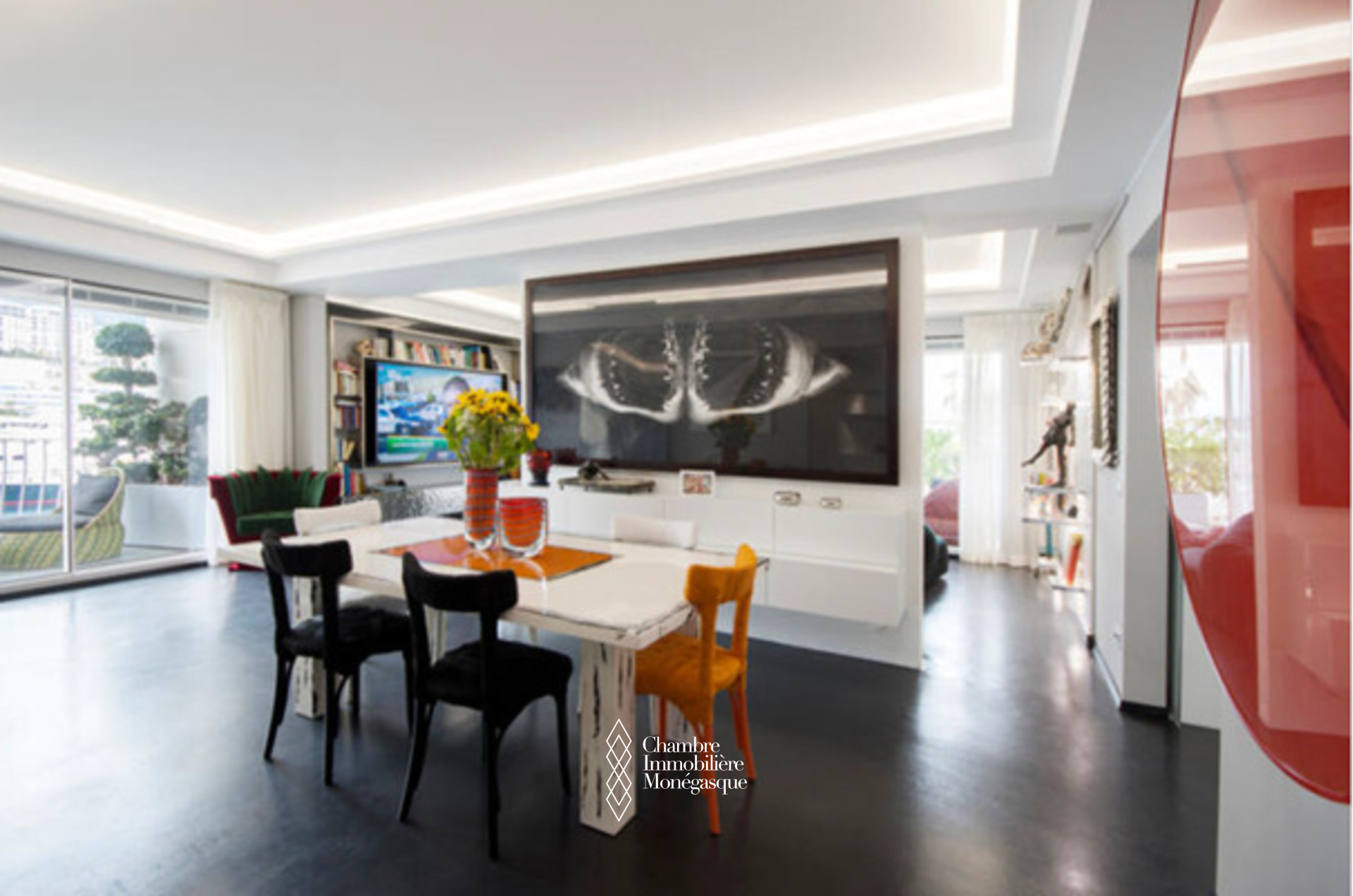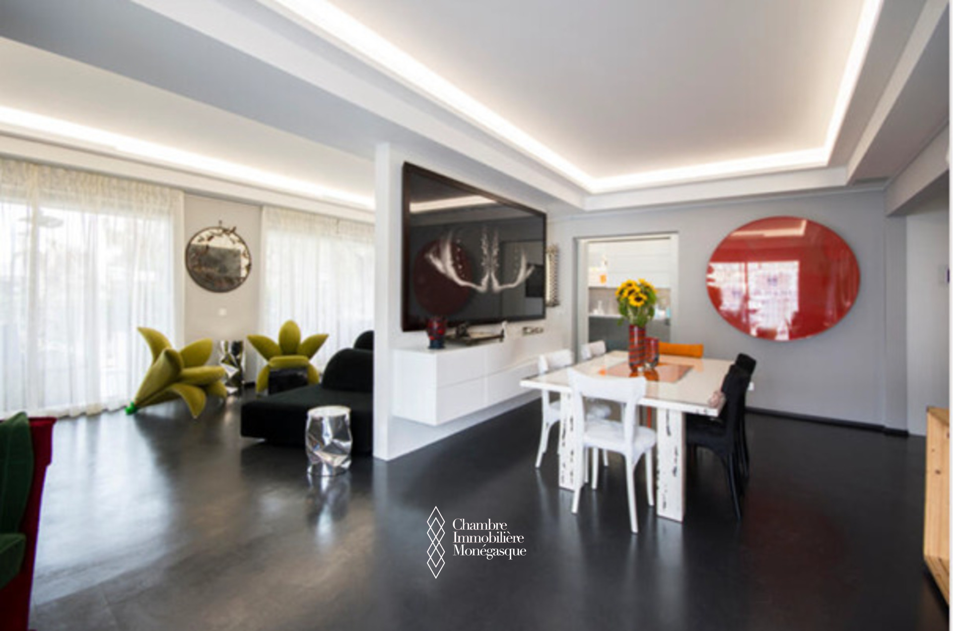 L'appartamento di 4 locali è formato dall'unione di due unità. È stato recentemente oggetto di ampi lavori di ristrutturazione. L'arredamento in stile contemporaneo include tutti gli infissi su misura realizzati da artigiani italiani, sistema di allarme e telecamere, riscaldamento ed aria condizionata autonomi, riscaldamento esterno che consente di godere della terrazza tutto l'anno, impianto stereo Sonos. Distribuzione: ingresso con guardaroba, soggiorno, sala da pranzo, cucina, ripostiglio, bagno per gli ospiti, balcone con vista su Fort Antoine, balcone con vista su Port Hercule e sulla città, 3 camere da letto, 3 bagni, cabina armadio, numerosi armadi a muro. Cantina e box auto inclusi.