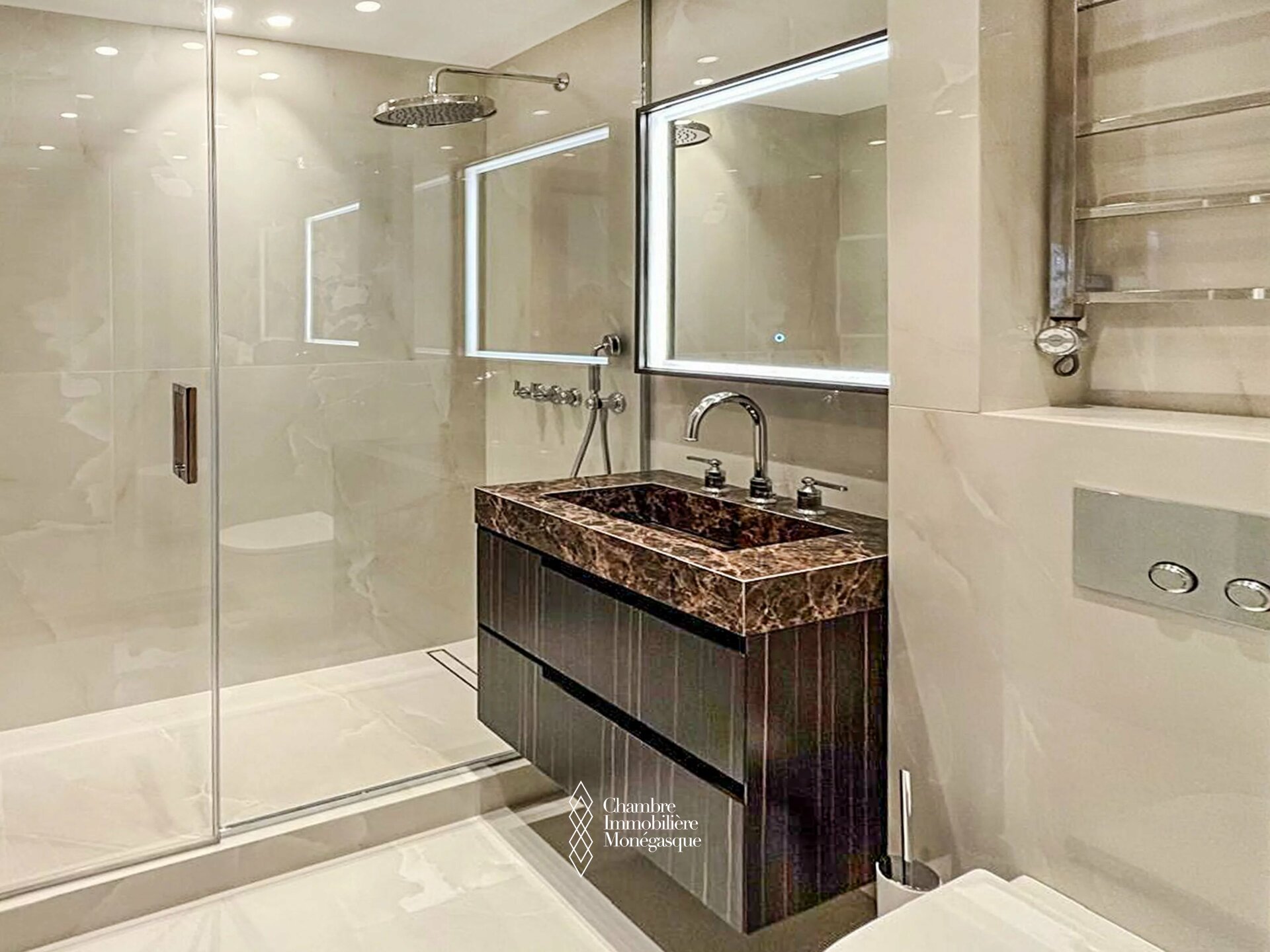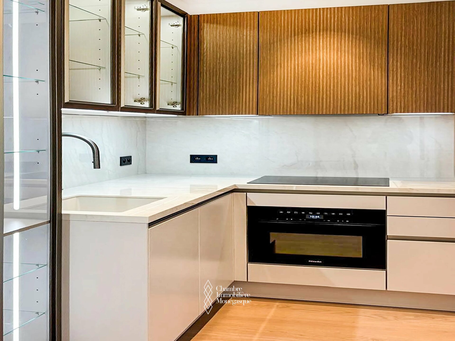 Situato nella popolare residenza di Roqueville, nel cuore del Carré d'Or, questo elegante appartamento a tre stanze offre un ambiente di vita raro e ambito, a soli 5 minuti a piedi dalla Place du Casino. Attraversando, luminoso e completamente ristrutturato, beneficia di una posizione privilegiata, in una residenza tranquilla con giardini paesaggistici e servizio di concierge, trovandosi nelle immediate vicinanze di boutique di lusso e ristoranti emblematici di Monaco. L'intero appartamento è stato ristrutturato con materiali nobili e servizi di qualità. I pavimenti sono rivestiti con parquet di legno massiccio, portando calore ed eleganza a ogni stanza. Entrambe le docce sono state rivestite in marmo, mettendo in risalto l'attenzione ai dettagli e il comfort. La cucina su misura, aperta sul soggiorno, è completamente attrezzata con elettrodomestici Miele, garantendo prestazioni e design. Numerosi spazi di stoccaggio incorporati sono stati progettati in ogni spazio per combinare estetica e funzionalità. I mobili, selezionati con gusto, completano il set con una decorazione contemporanea e raffinata. Questa proprietà rappresenta una rara opportunità per acquistare una residenza chiavi in mano in una delle aree più ambite del Principato.