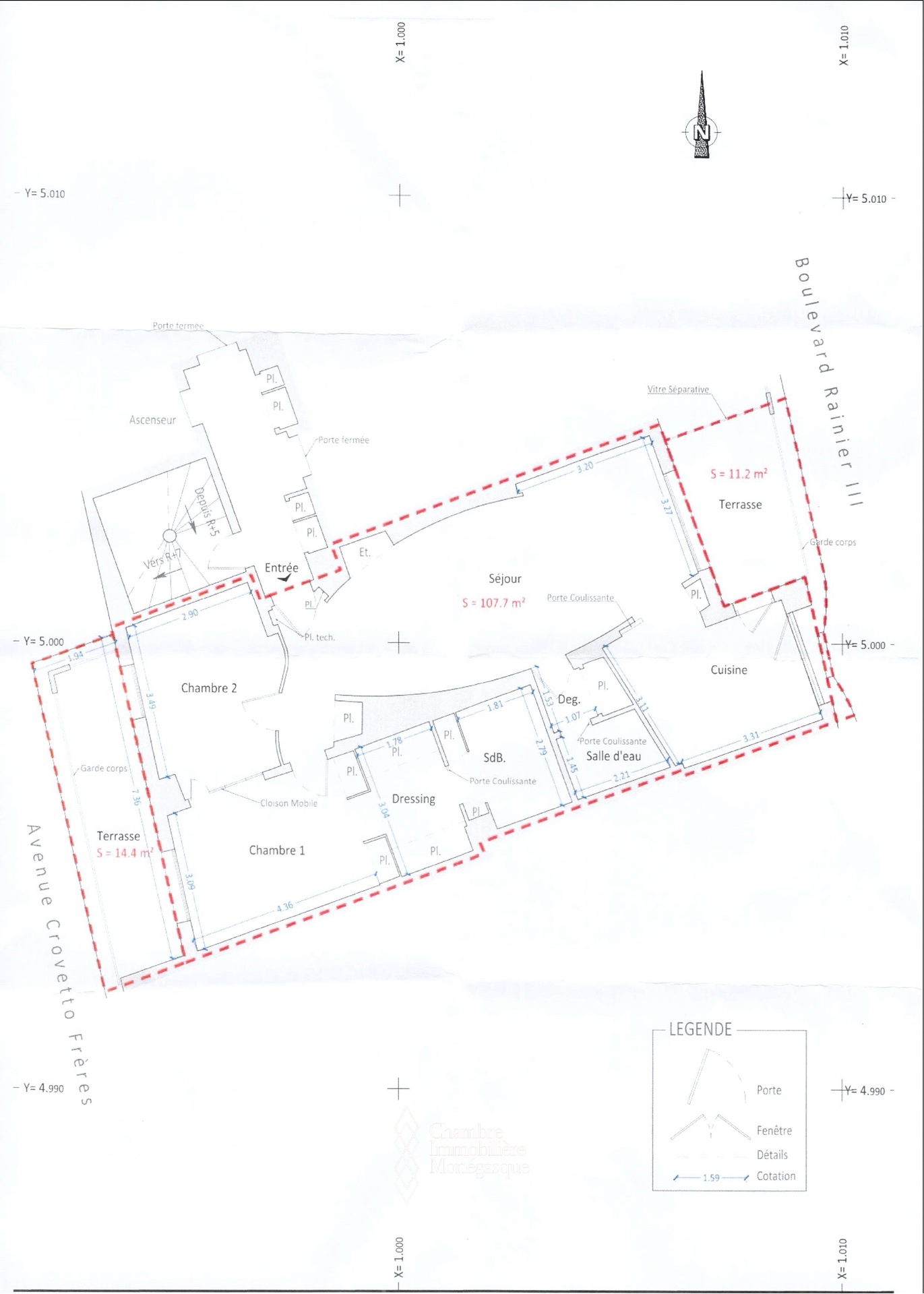 Appartamento a 3 stanze di 133m2 situato nell'edificio 'Le Parador II' nel quartiere di Condamine.