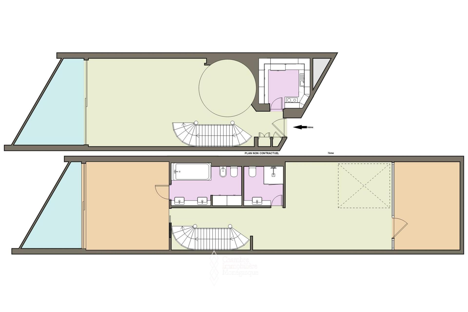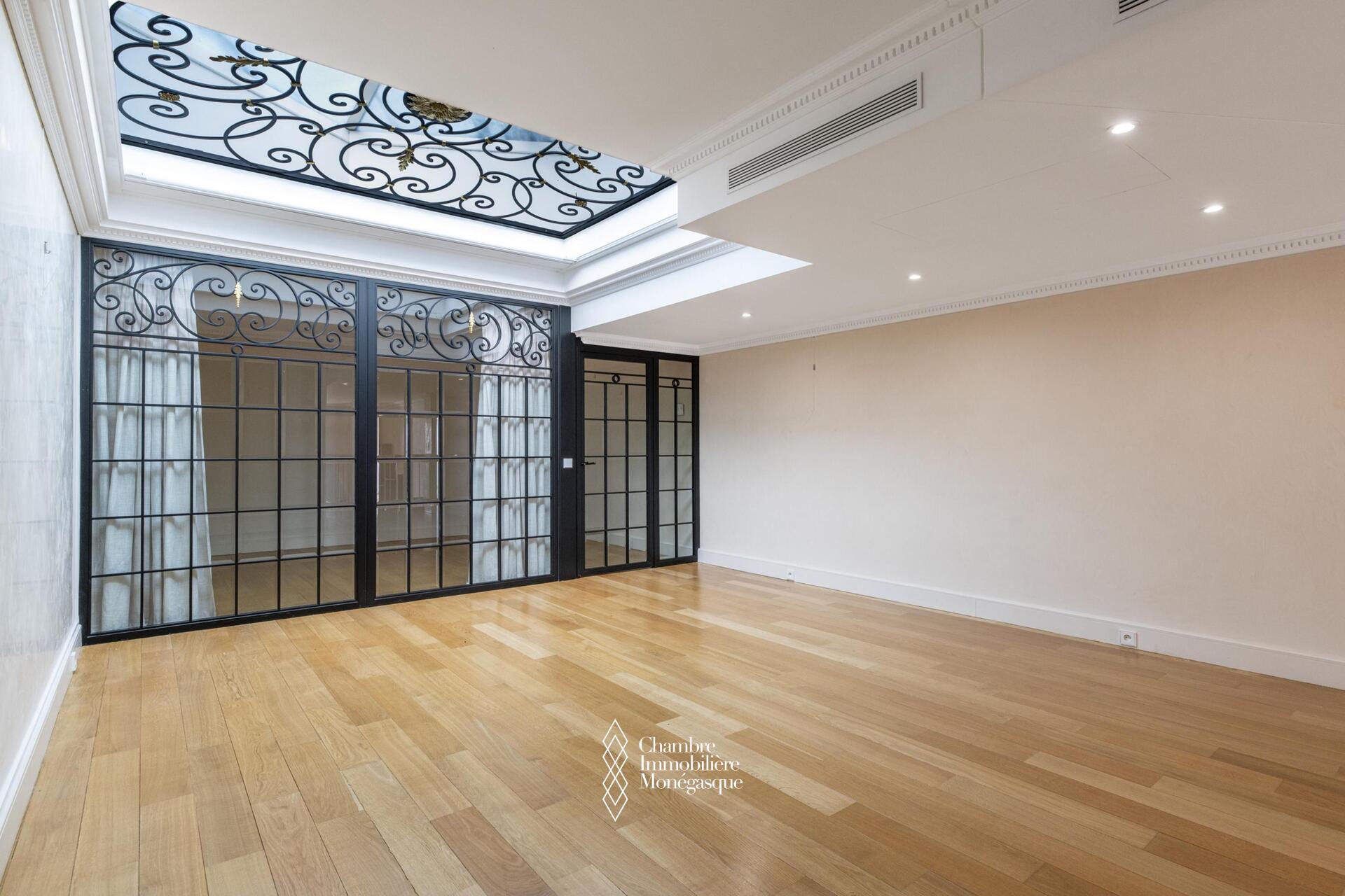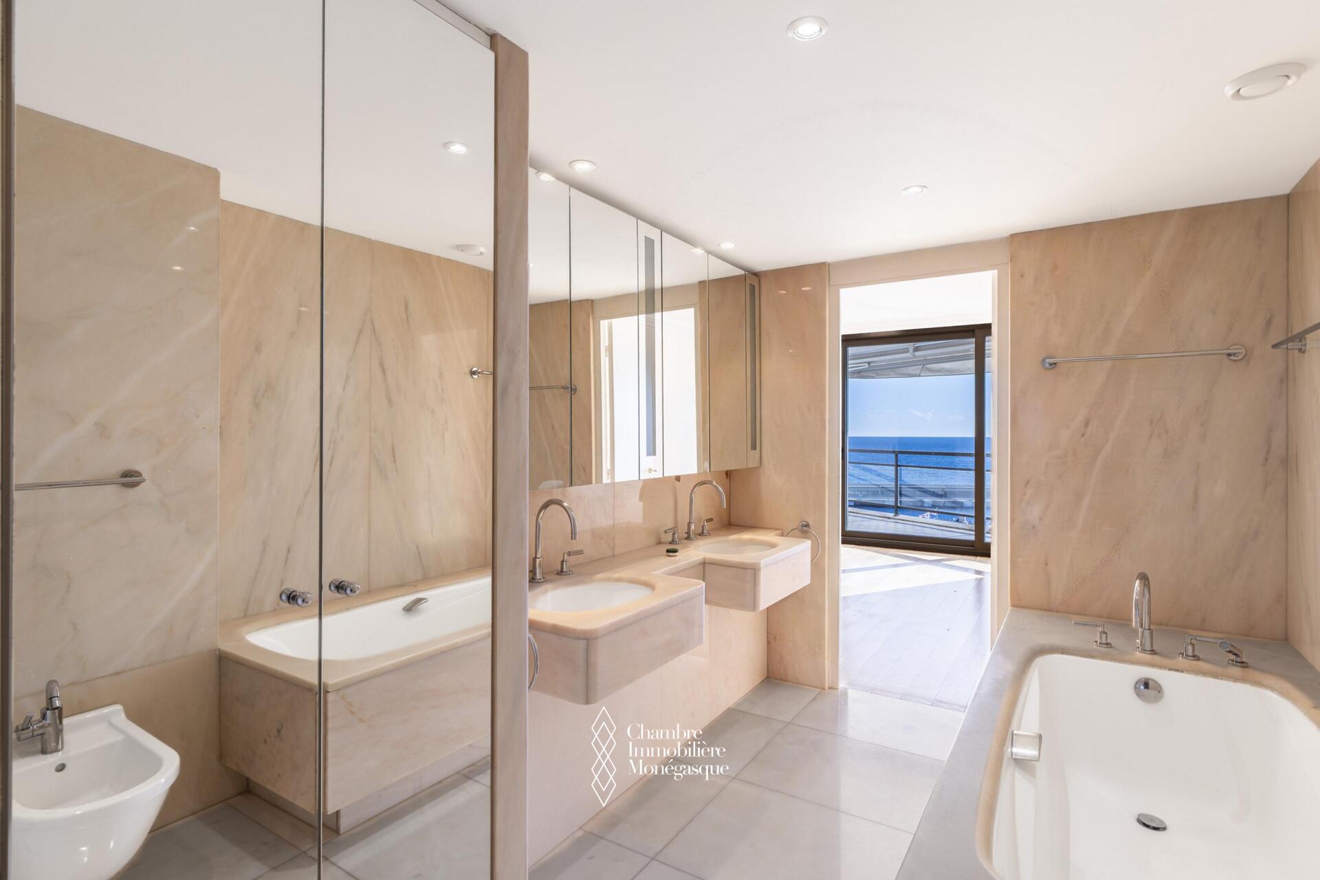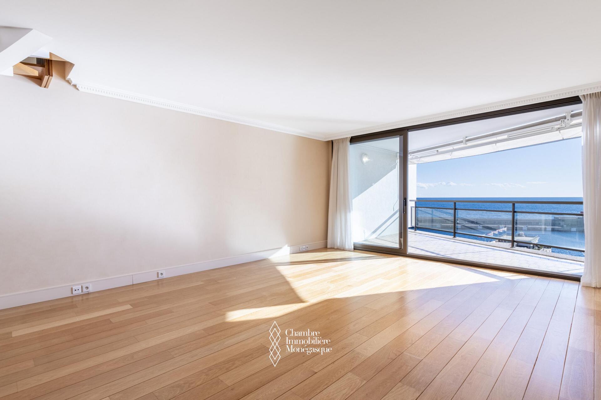 Superbe appartement en duplex situé dans la prestigieuse résidence du Monte-Carlo Star, en plein cœur du Carré d'or, bénéficiant d'une magnifique vue sur la mer, le port Hercule et le Rocher.