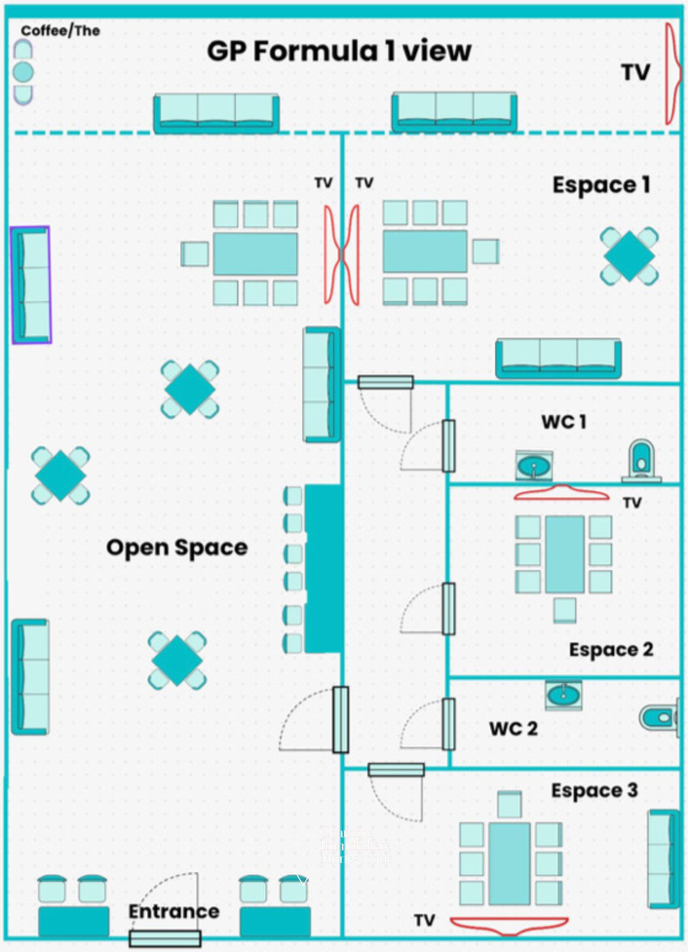 - Plusieurs télévisions réparties dans le local