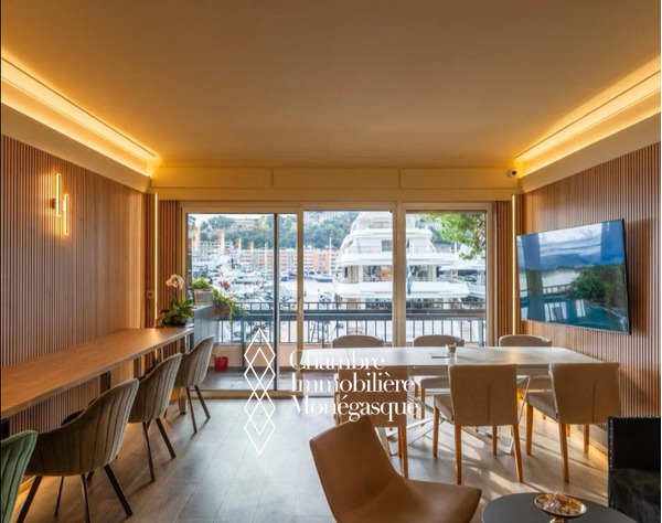 Le local bénéficie également d’une vue panoramique exceptionnelle sur le port, les yachts et le Rocher, offrant un cadre unique mêlant sport automobile, prestige et art de vivre monégasque.