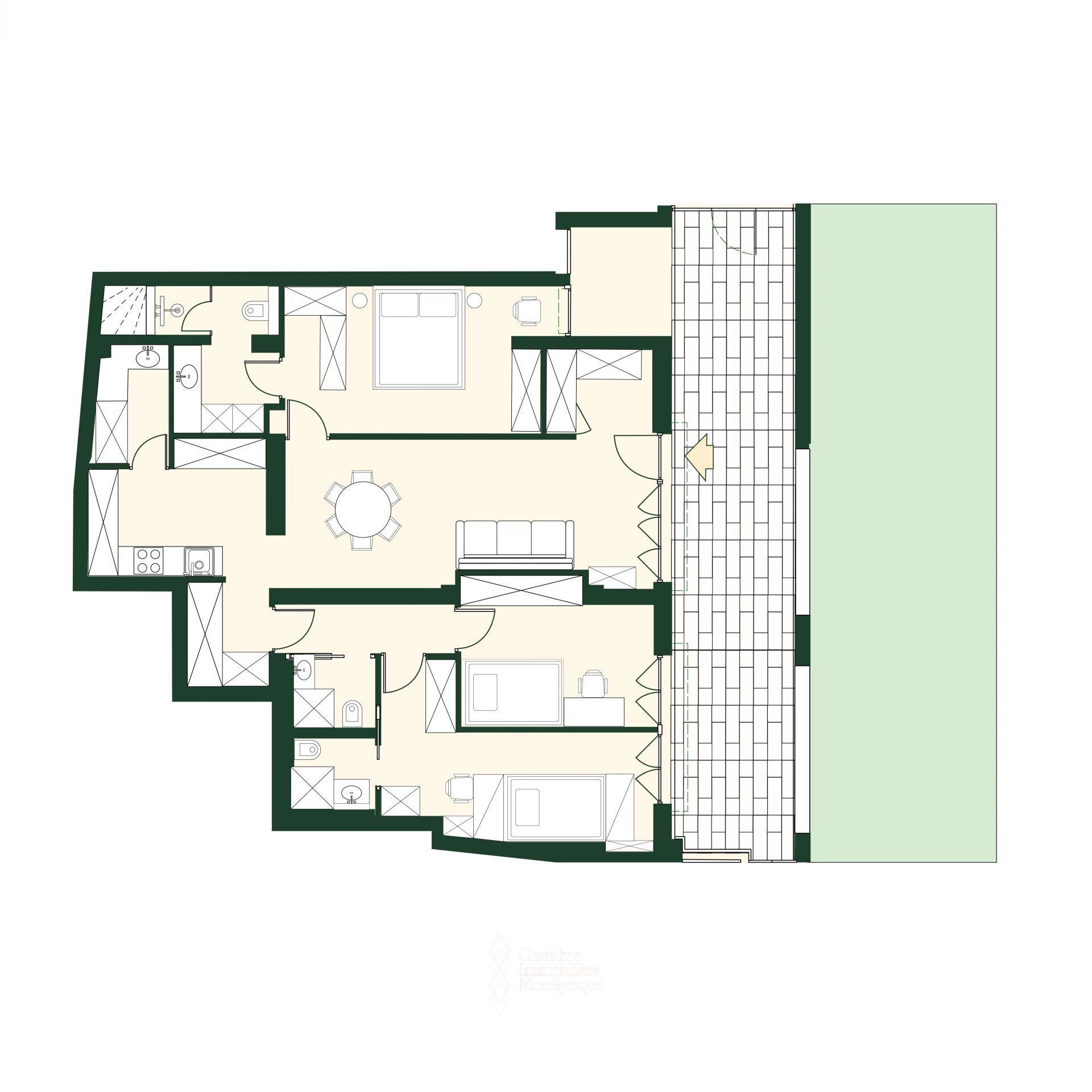 Situato al 1° piano della lussuosa residenza Les Acanthes, nel cuore del ricercatissimo Carré d'Or, questo elegante appartamento con tre camere da letto offre un grande potenziale di trasformazione in due o addirittura tre camere da letto, a seconda delle esigenze.