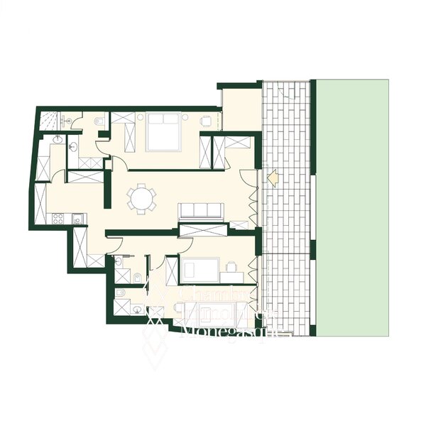 Situato in posizione ideale, nelle immediate vicinanze di boutique di lusso, ristoranti rinomati e dei migliori indirizzi culturali e festivi di Monaco, questo appartamento è un'oasi di pace nel cuore del trambusto monegasco.