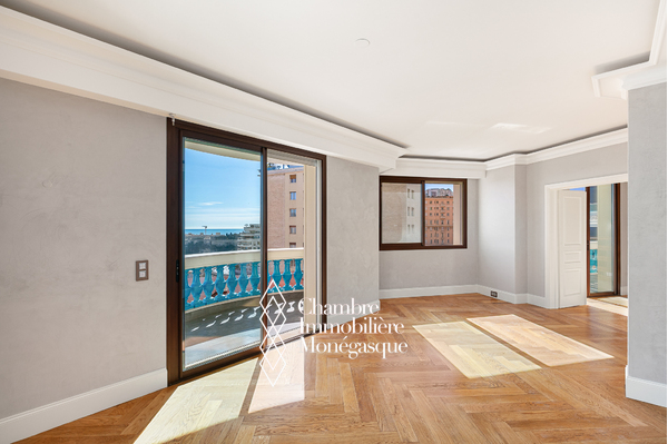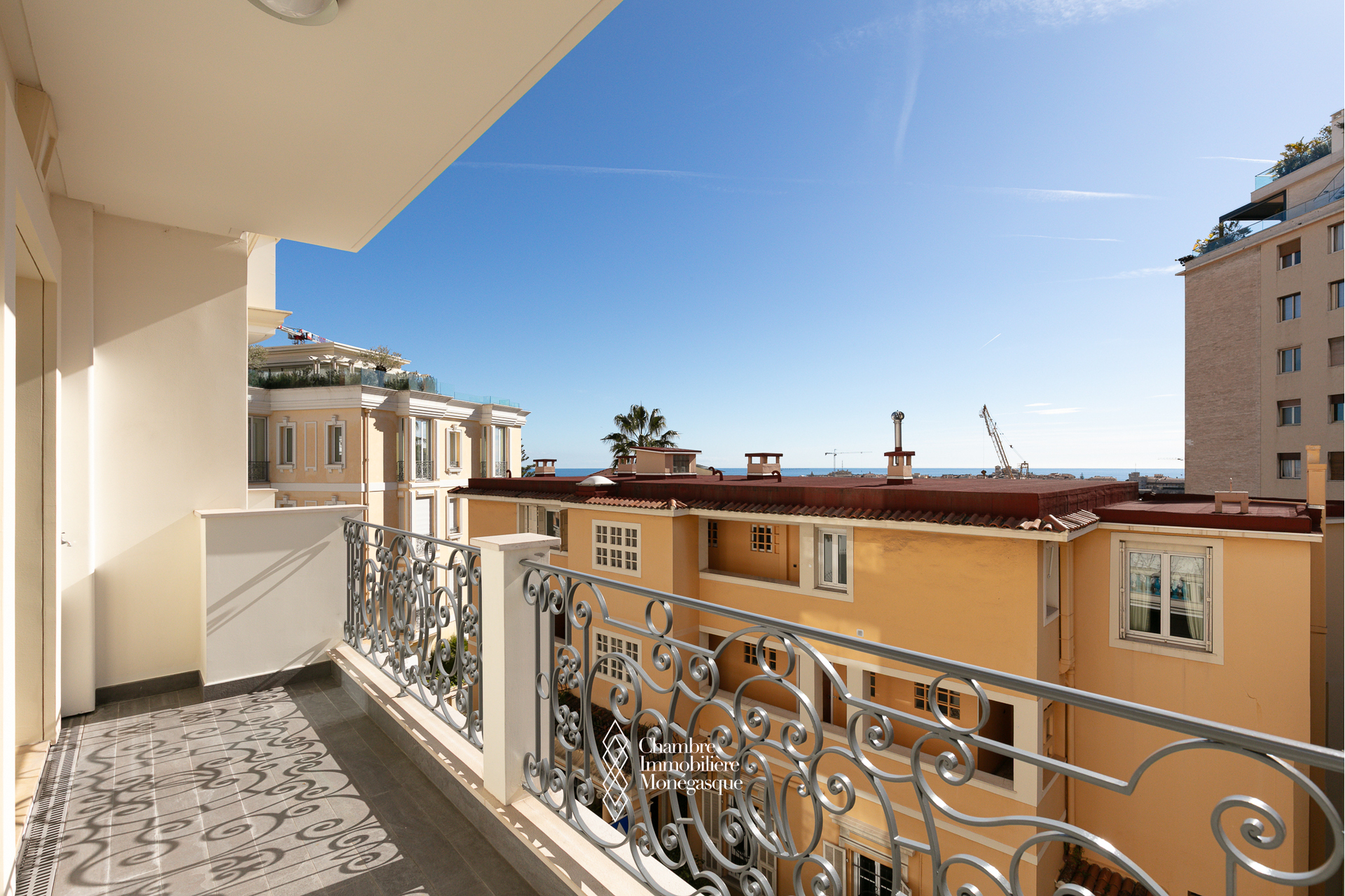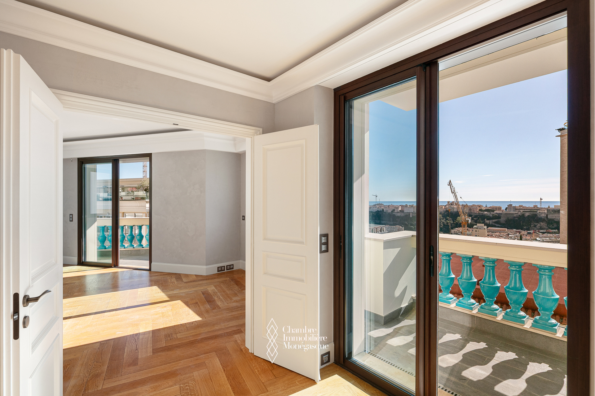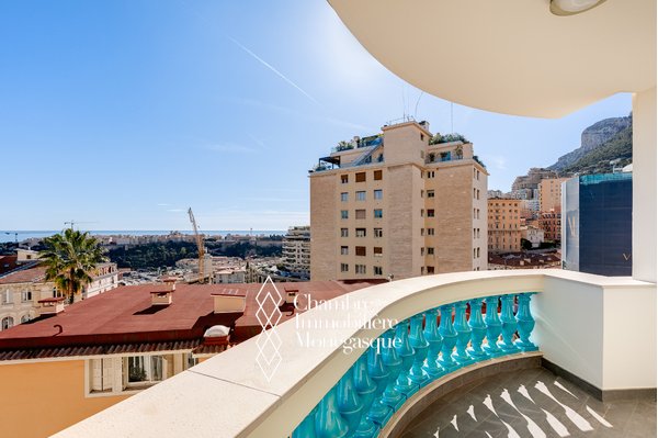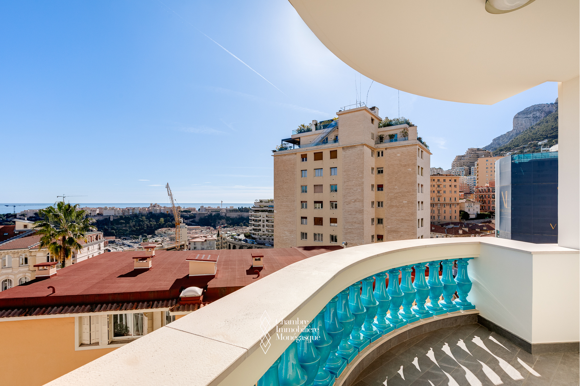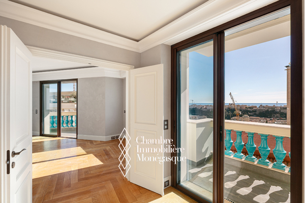 Completamente ristrutturato, l'appartamento è molto luminoso grazie alla sua tripla esposizione e alle numerose finestre a bovindo, offrendo una vista libera sul Principato, sulla sua roccia e sul Mediterraneo.