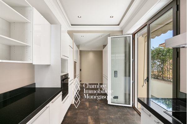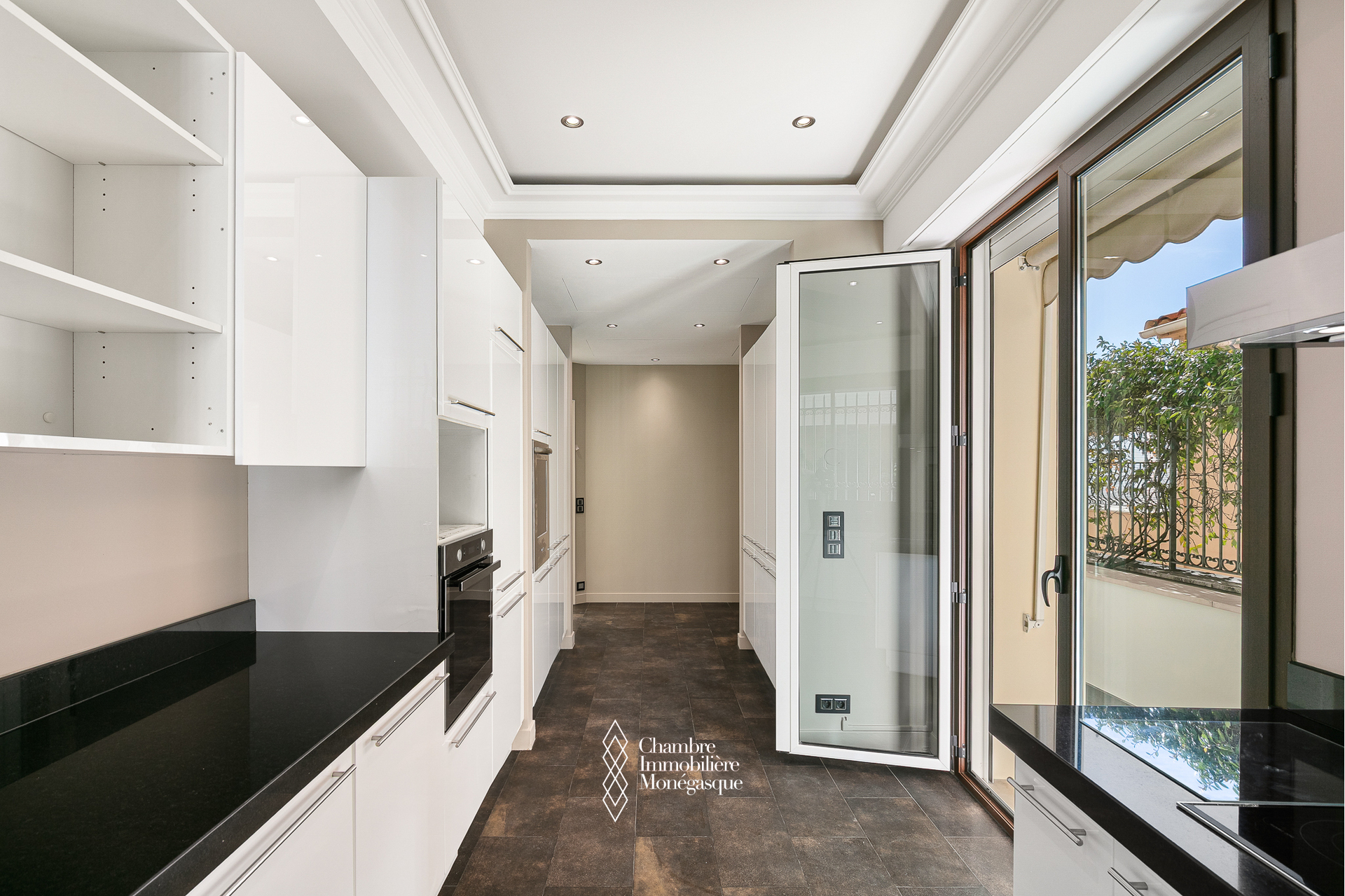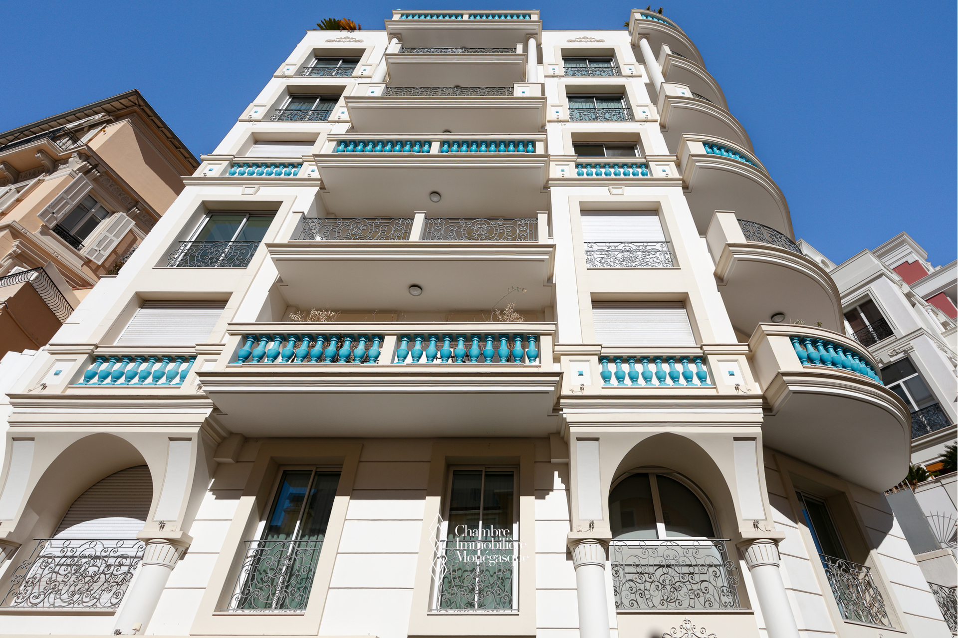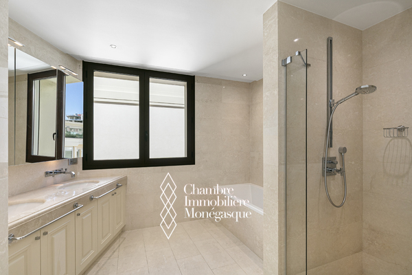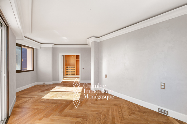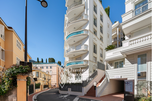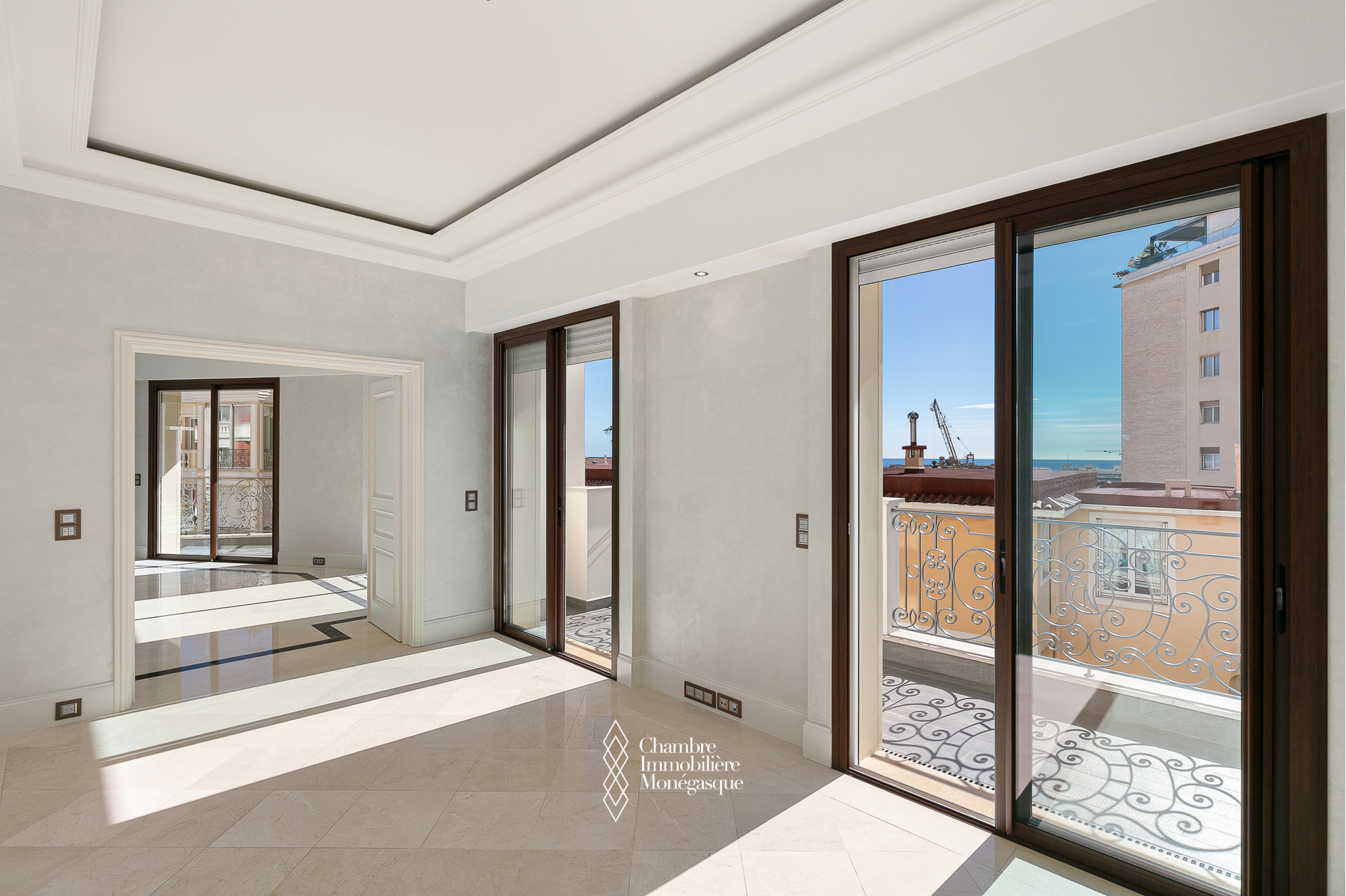 Completamente ristrutturato, l'appartamento è molto luminoso grazie alla sua tripla esposizione e alle numerose finestre a bovindo, offrendo una vista libera sul Principato, sulla sua roccia e sul Mediterraneo.