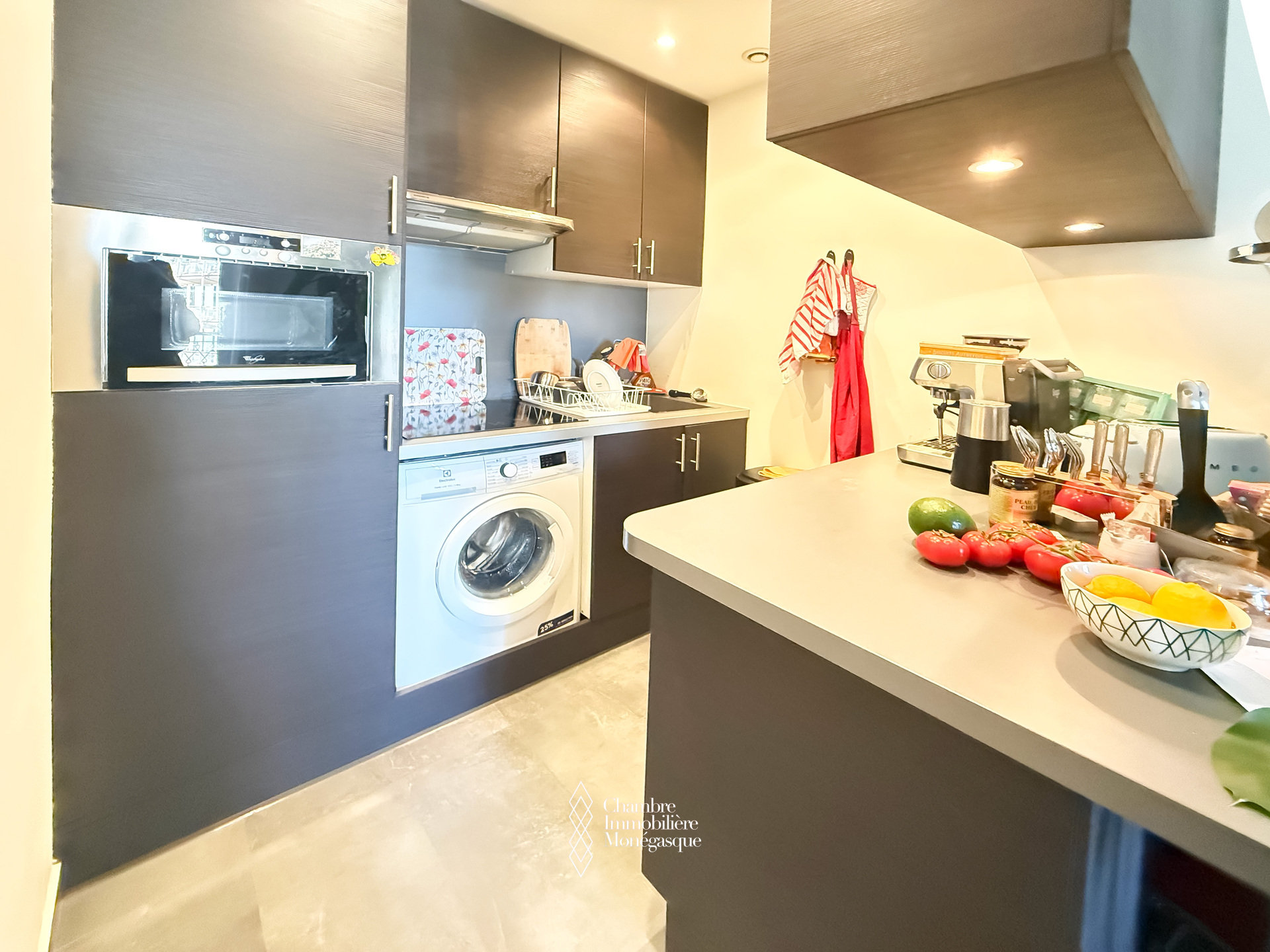 Questo splendido bilocale in ottime condizioni è composto da un ingresso, un soggiorno con cucina a vista completamente attrezzata, una camera da letto, un bagno con doccia e WC, una cabina armadio e un WC ospiti. Una terrazza con una leggera vista mare si affaccia su Avenue Princesse Alice e di fronte al complesso One Monte-Carlo e alle sue boutique di lusso.