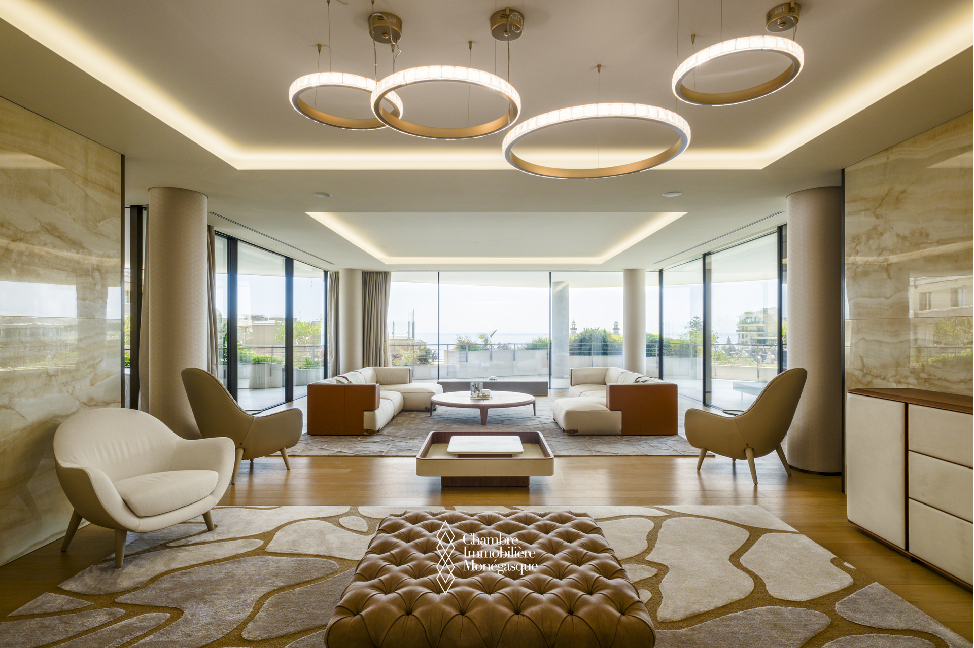 QUESTA SPLENDIDA PROPRIETÀ COMPRENDE UN AMPIO SOGGIORNO CON FINESTRE DAL PAVIMENTO AL SOFFITTO, CHE SI APRE SU UNA TERRAZZA CHE SI AFFACCIA SULLA PIAZZA DEL CASINÒ
