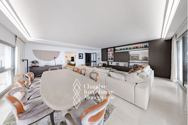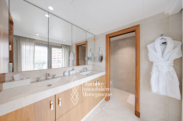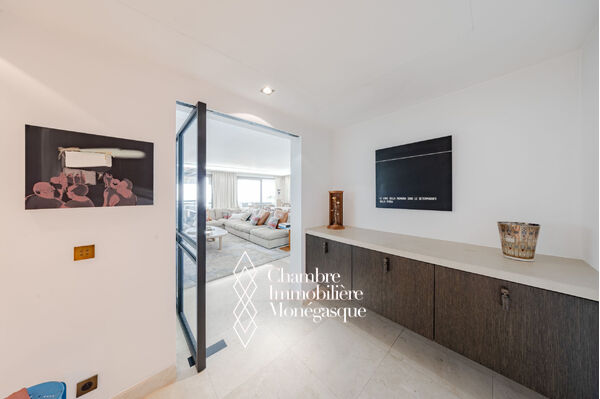 CO-ESCLUSIVA Appartamento familiare che offre un raro equilibrio tra spazio, eleganza e viste panoramiche. In ottime condizioni, gli interni sono arredati e ristrutturati da Obumex e i mobili su misura firmati Maison Liagre riflettono un lusso discreto e una sofisticazione senza tempo: Ampio soggiorno e sala da pranzo: uno spazio luminoso e accogliente, perfetto per ospitare. Studio/sala famiglia: un ambiente versatile che può essere trasformato in camera da letto o in palestra. Suite padronale: due grandi cabine armadio e un bagno con doccia privato. Seconda camera: bagno privato e numerosi ripostigli integrati. Terza camera: ideale per bambini o ospiti, bagno con doccia privato. Cucina: americana aperta, attrezzata, con lavanderia e cantina vini. Due ascensori privati, oltre a un ascensore di servizio per il personale.