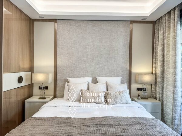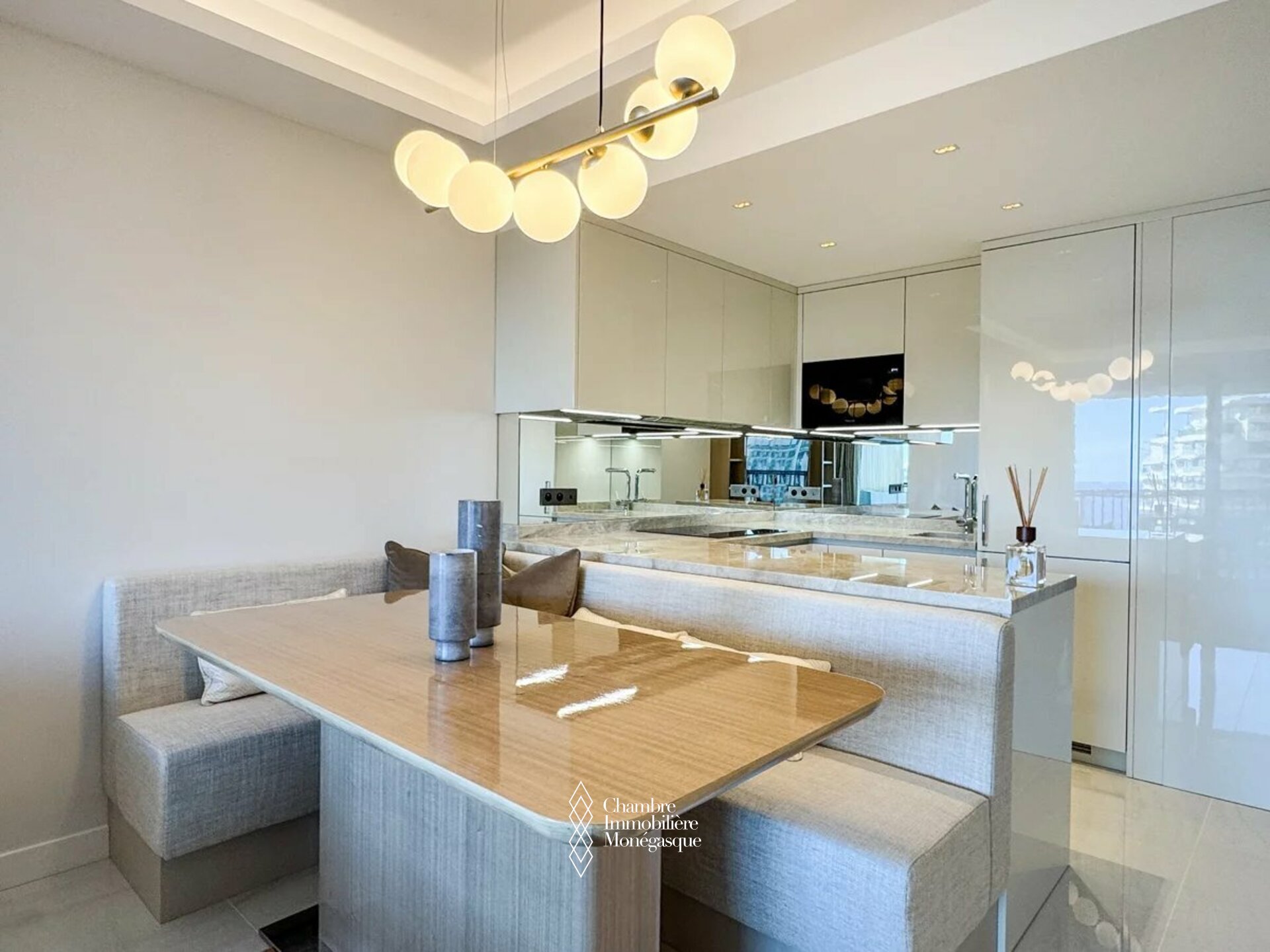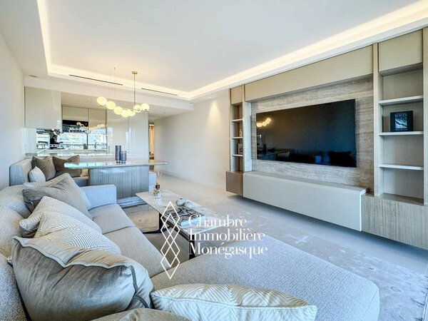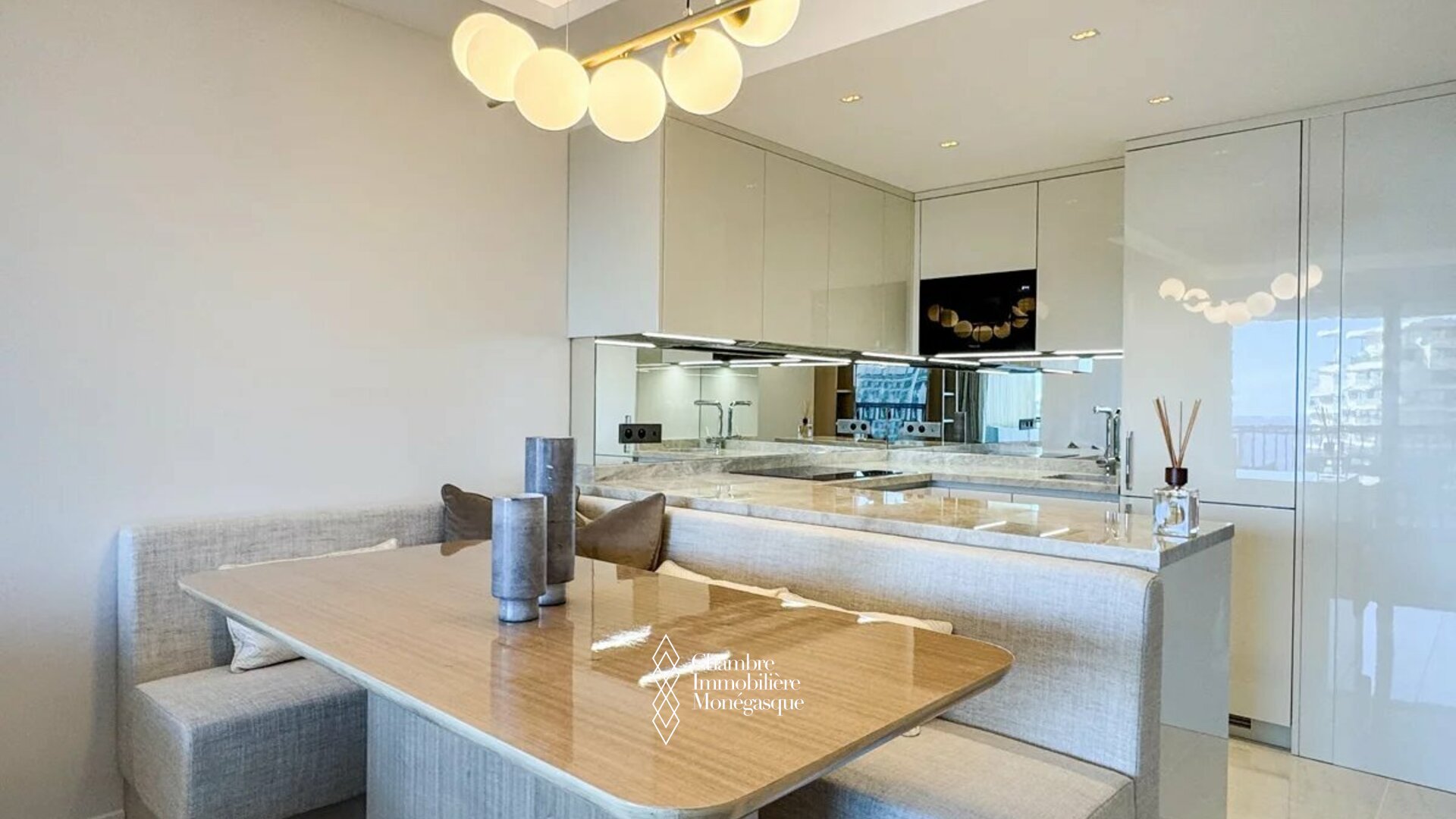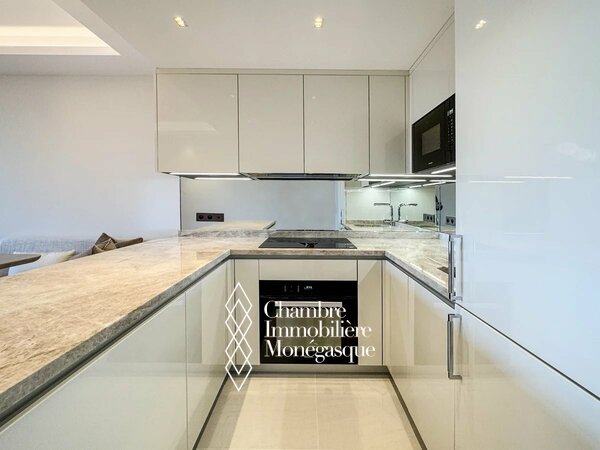 Questo straordinario appartamento di lusso, appena ristrutturato con materiali di pregio e completamente arredato, conquista per il suo design moderno, materiali eleganti e spazi luminosi. La superficie abitabile generosamente distribuita comprende due camere da letto eleganti, ciascuna con bagno privato in marmo dotato sia di vasca che di doccia separata – un rifugio di tranquillità e comfort. Il soggiorno ampio con zona pranzo integrata è aperto e rappresentativo. La cucina di design moderna è completamente attrezzata con elettrodomestici di altissima qualità, soddisfacendo i più elevati standard di funzionalità e stile. Un punto forte particolare è la terrazza molto spaziosa: l’area salotto invita a momenti di relax e offre una vista mozzafiato sul mare. Tutti i materiali e i dettagli degli arredi sono stati selezionati con cura e corrispondono ai più alti standard qualitativi. L’appartamento si trova nel prestigioso Carré d’Or, a pochi passi dal leggendario Place du Casino – uno degli indirizzi più esclusivi di Monaco. Inoltre, un ristorante Cipriani è situato direttamente nell’edificio, completando perfettamente il lusso urbano di questa residenza. L’edificio offre servizi di prim’ordine, tra cui concierge 24/7, piscina e palestra all’avanguardia. L’appartamento include inoltre un parcheggio privato e una cantina separata. Questa residenza unisce eleganza, comfort e posizione eccellente – una casa perfetta per intenditori esigenti