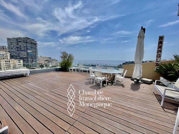 Una scala interna conduce all’ultimo piano, dove si apre un eccezionale terrazzo sul tetto. Un privilegio raro, che regala una vista spettacolare sul Mediterraneo e sul Rocca di Monaco, ideale per momenti indimenticabili.