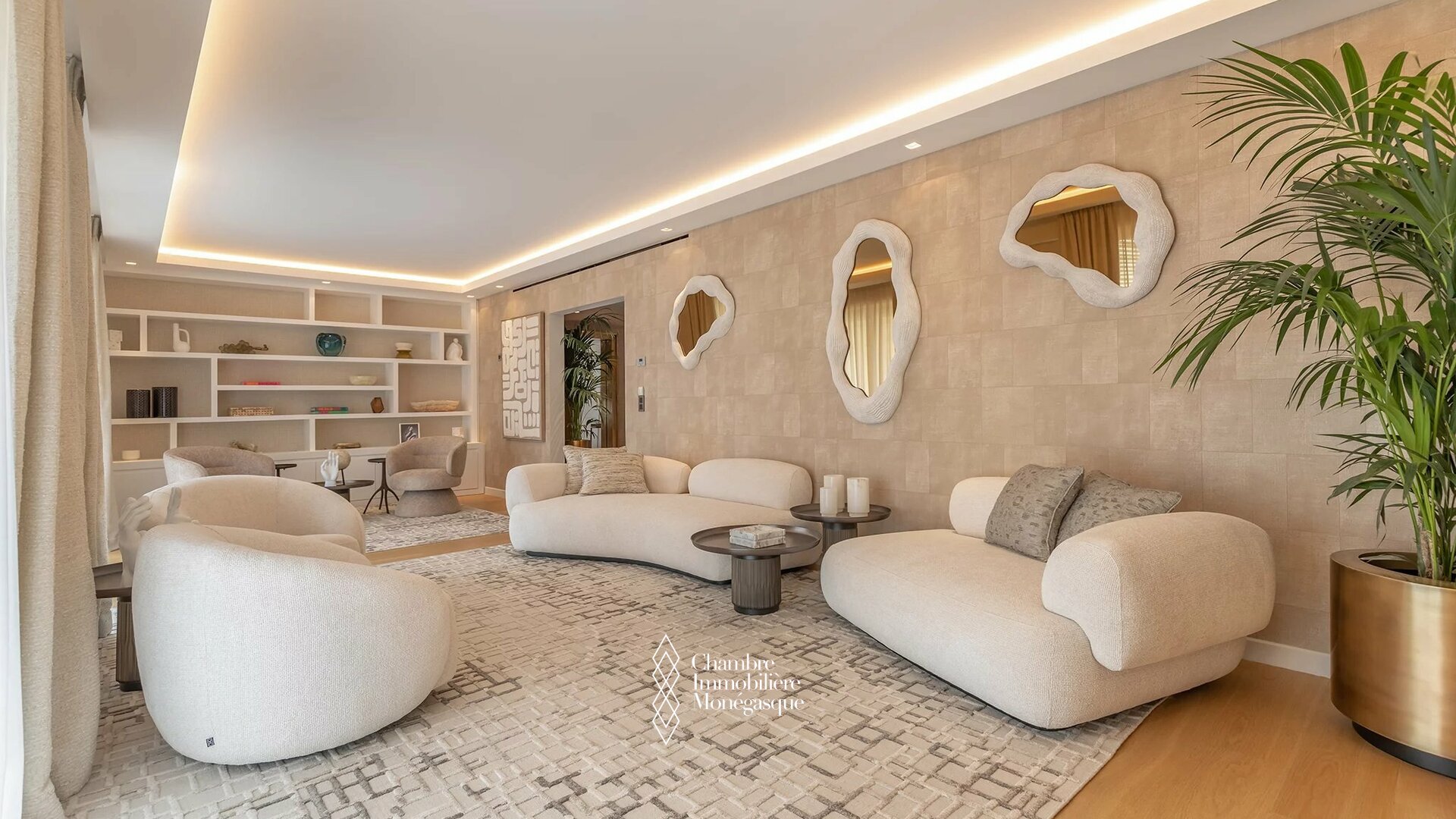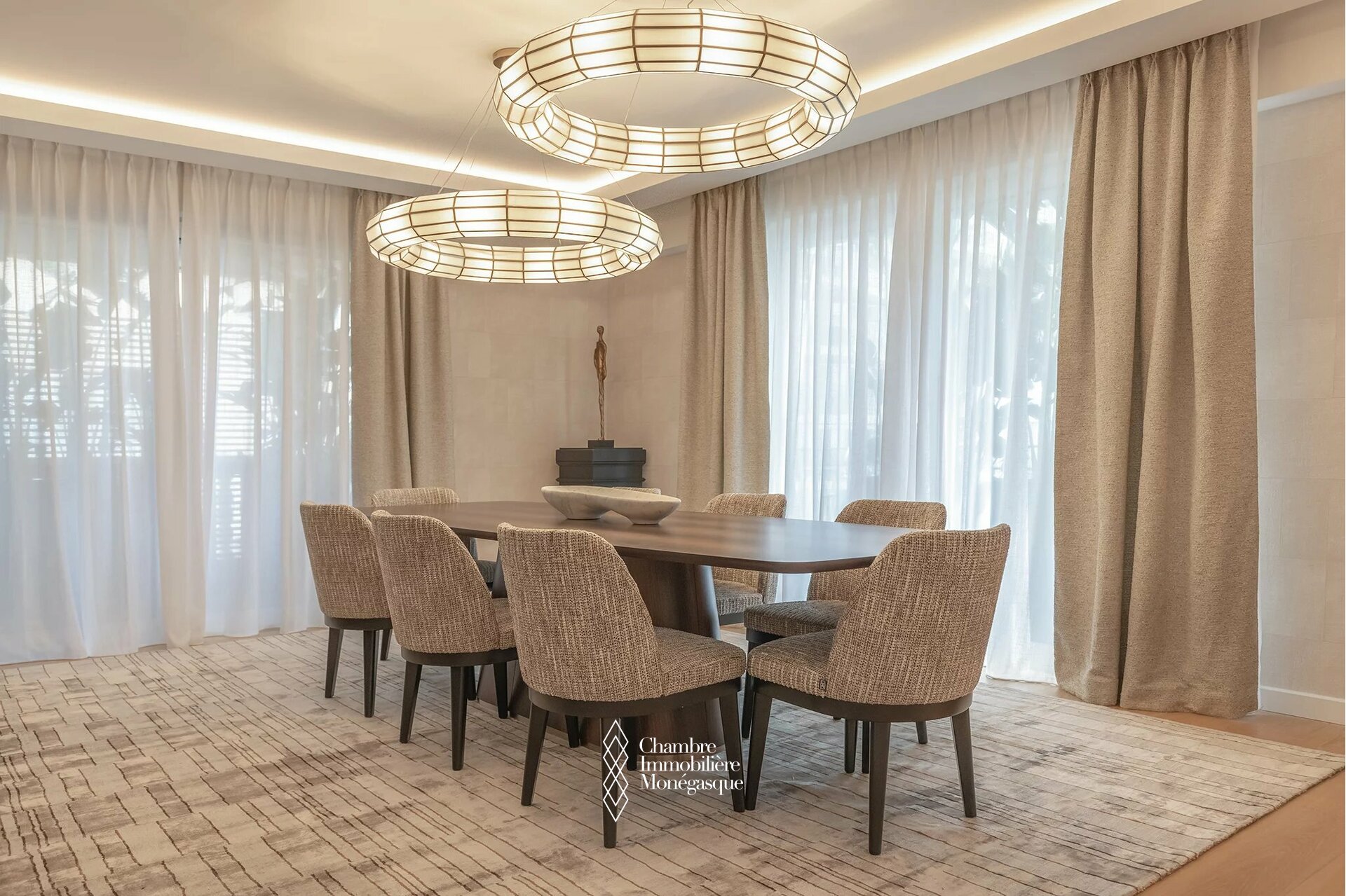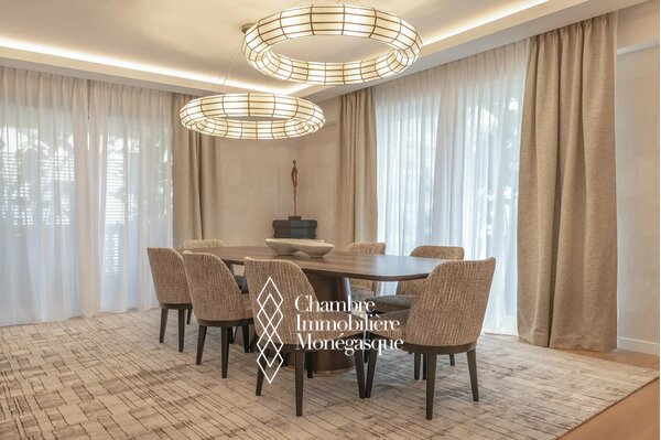 Les Villas del Sole è un residence di lusso con servizio di portineria 24 ore su 24, 7 giorni su 7, e una splendida piscina comune sul tetto. La posizione è a pochi passi dal Monte Carlo Country Club, dalle spiagge del Larvotto e dalla scuola internazionale. Questo magnifico appartamento di 5/6 locali, con 4 camere da letto e 5 bagni, occupa l'intero ultimo piano dell'edificio. Si estende su 460 m2 e vanta stanze ampie e luminose. Tutti i pavimenti di questo appartamento sono rivestiti in legno di quercia, conferendo un'atmosfera molto calda. Dispone inoltre di un ampio spazio di archiviazione. L'appartamento è inoltre dotato di un sistema audio nel doppio soggiorno, nella sala da pranzo e nella camera da letto principale.