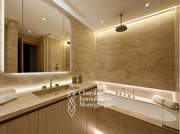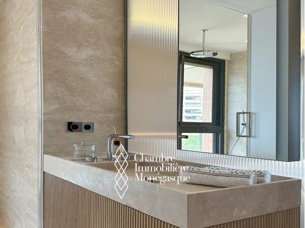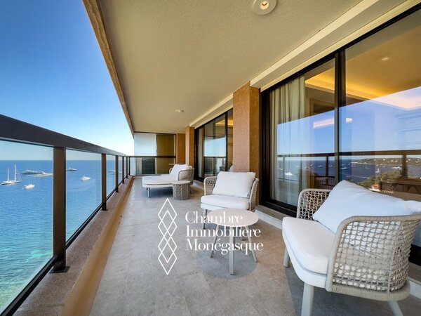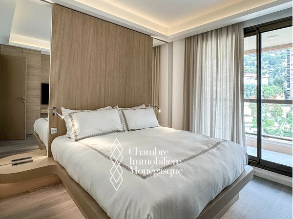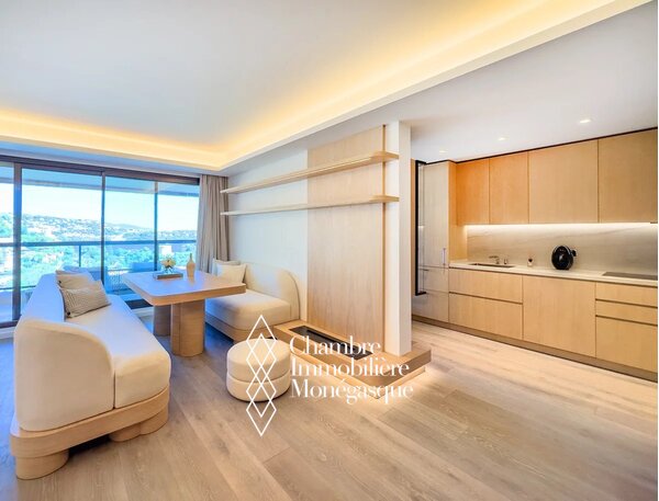 Nella prestigiosa residenza Monte-Carlo Sun, con servizio di portieria 24 ore su 24, un parco paesaggistico e una piscina, vi attende un appartamento di tre stanze ristrutturato con grande stile, situato in una posizione privilegiata vicino alla spiaggia, al Country Club e alla Scuola Internazionale di Monaco. Questo appartamento chiavi in mano, completamente arredato, combina materiali nobili, finiture in legno chiaro e design contemporaneo per creare un insieme armonioso e di grande raffinatezza. Due camere da letto e due eleganti bagni offrono un comfort esclusivo al massimo livello. La spaziosa terrazza si apre su una spettacolare vista panoramica sul Mar Mediterraneo e su Cap Martin – una vera espressione dell'arte raffinata della vita.
