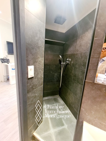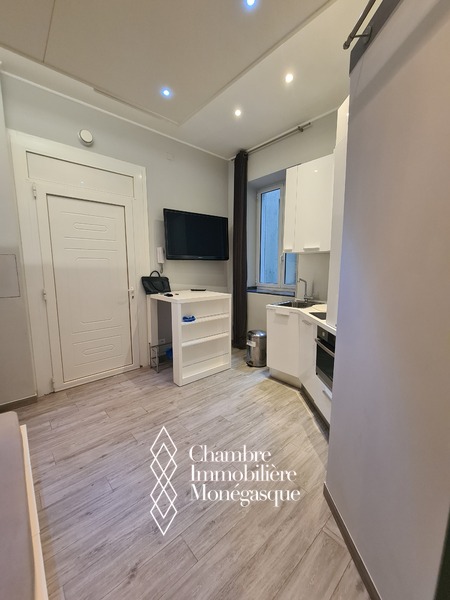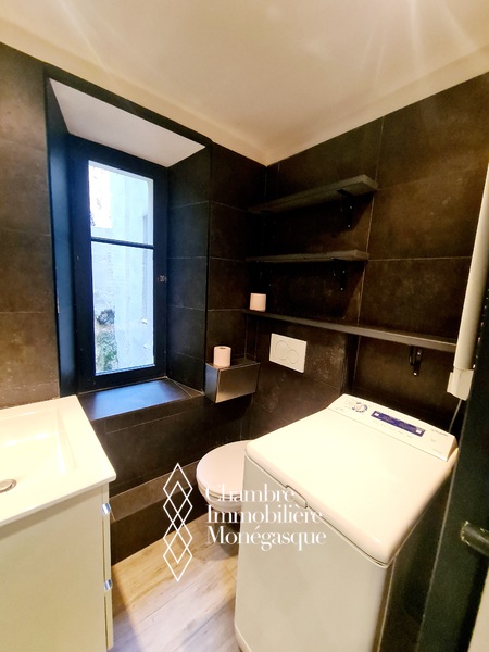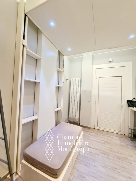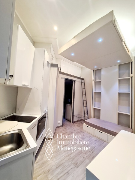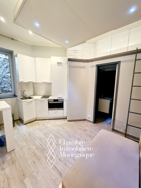 Monolocale  sul retro dell'edificio (al 2° sottopiano) composto da una locale principale con angolo cottura, un bagno con wc. Arredato con mobili su misura, è il pied-à-terre perfetto per una persona