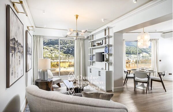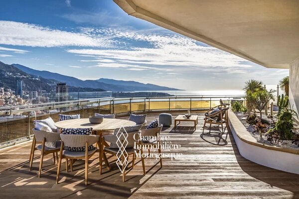 Benvenuti in questo splendido appartamento di 3/4- locali, completamente arredato e dotato di materiali della più alta qualità – un vero capolavoro di architettura e design. La residenza «Les Ligures» offre servizi esclusivi come concierge 24 ore su 24, 7 giorni su 7, palestra, piscina all’aperto, ampi giardini e un campo da tennis. Ogni dettaglio di questo appartamento è stato progettato con la massima cura da una rinomata interior designer e ristrutturato con grande attenzione utilizzando materiali di altissimo livello. L’ingresso vi accoglie con eleganza e conduce direttamente all’ampio soggiorno, che si integra armoniosamente con una raffinata zona studio e una moderna cucina a vista. Questa spaziosa configurazione crea un’atmosfera calda e accogliente, perfetta sia per momenti conviviali sia per rilassarsi in tranquillità. L’appartamento dispone di due splendide camere da letto che garantiscono un’intimità assoluta. Entrambe le camere sono dotate di bagno privato e cabina armadio. Il vero punto forte di questa proprietà è la spettacolare terrazza, che offre una vista panoramica incomparabile sul glamour di Monaco. Qui potrete concludere la giornata con un bicchiere di vino o semplicemente godervi la vista sul mare e sulla città – semplicemente magico! Questo appartamento rappresenta un rifugio unico nel cuore di Monaco. Un vero gioiello da non perdere! Una cantina doppia e un posto auto completano la proprietà.