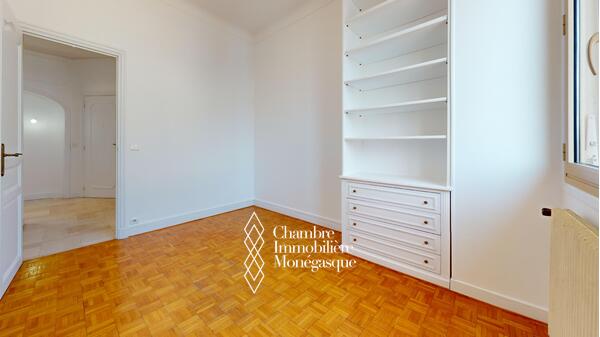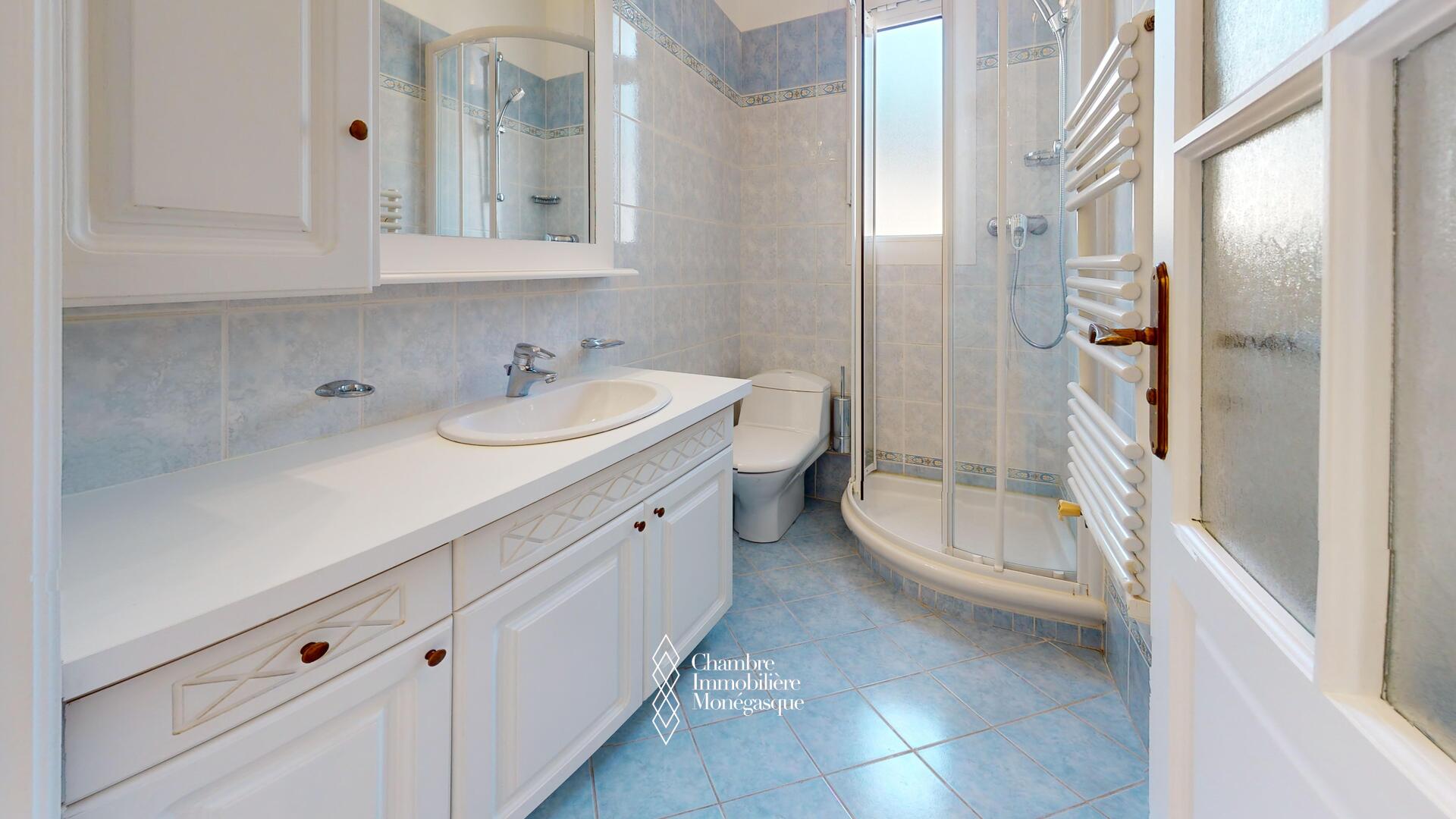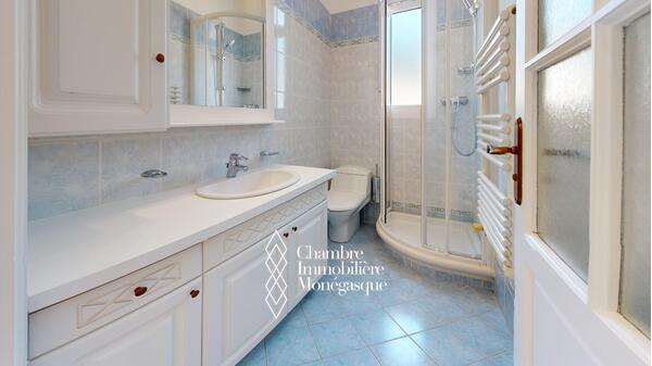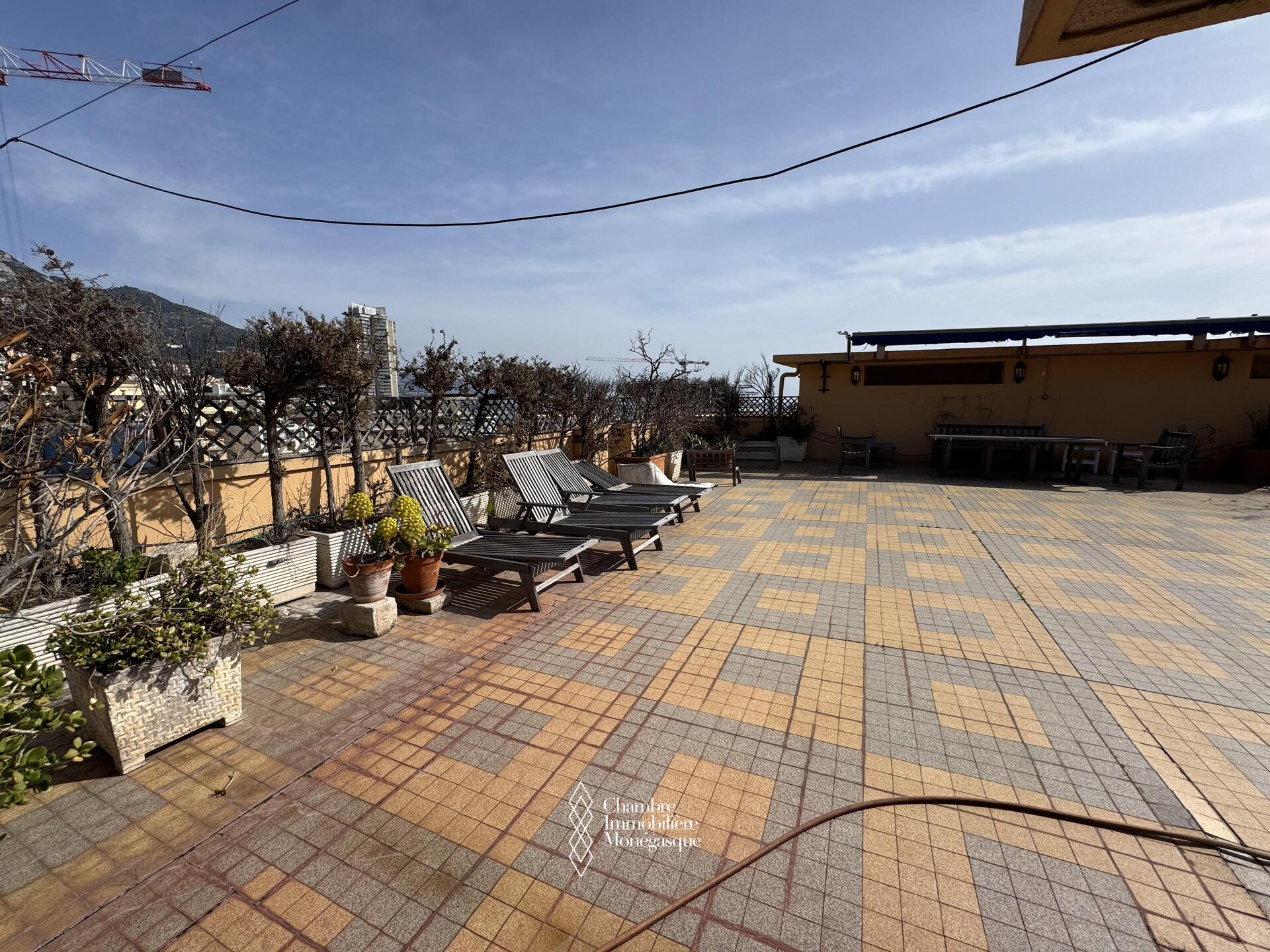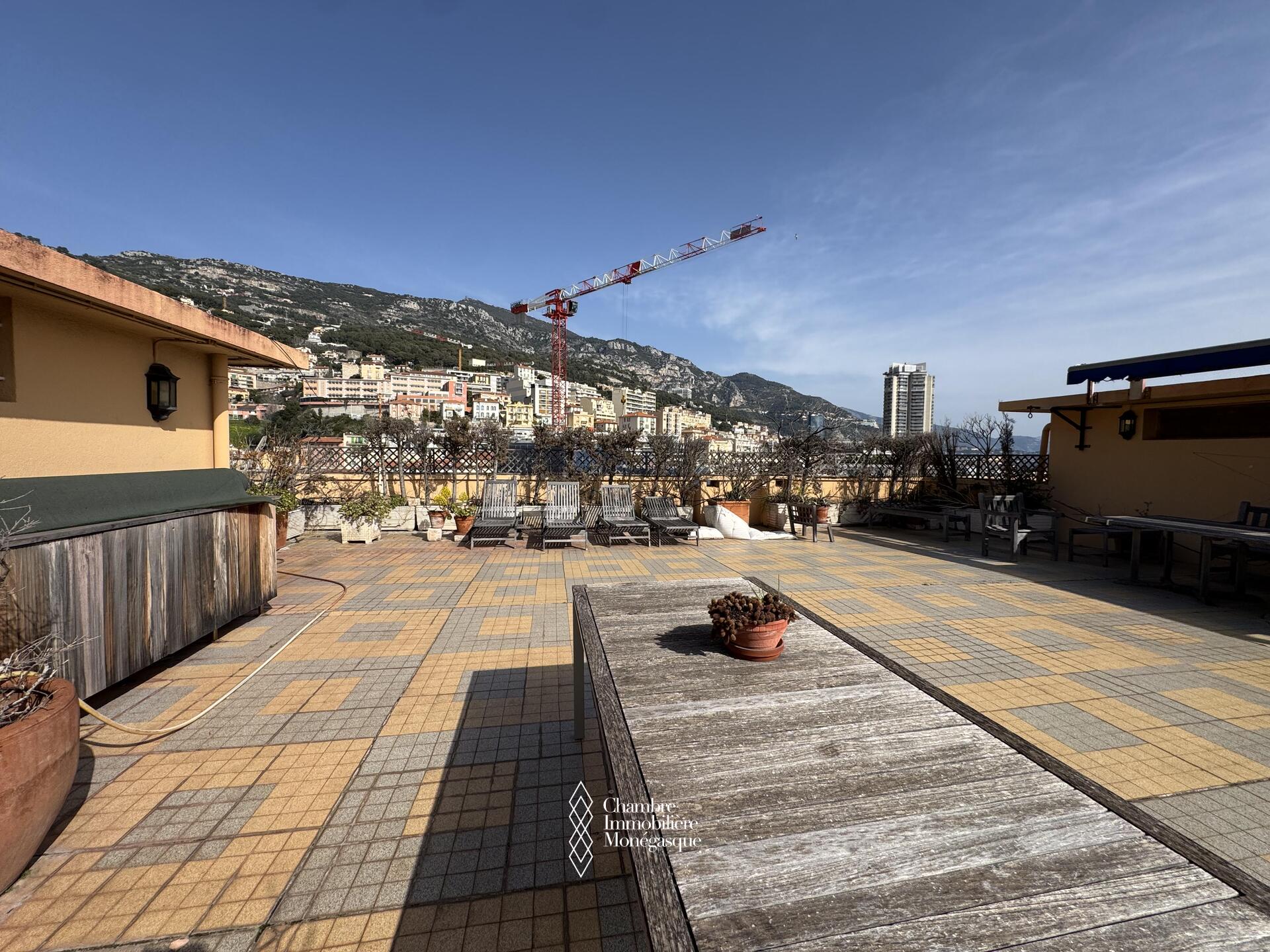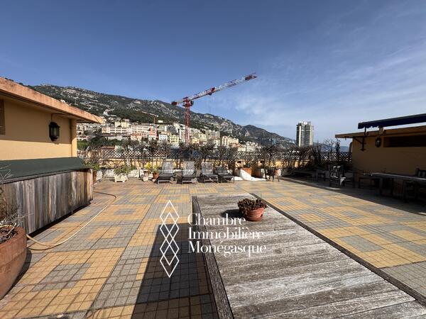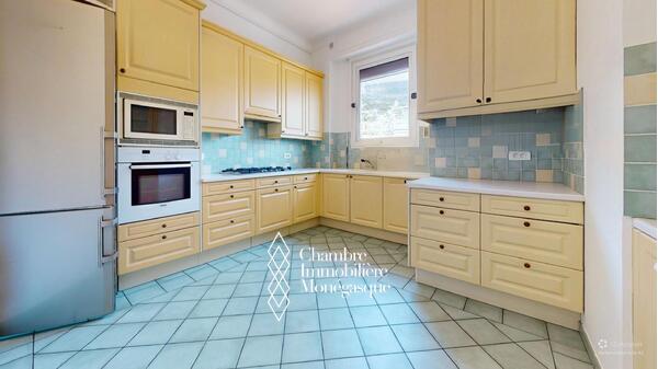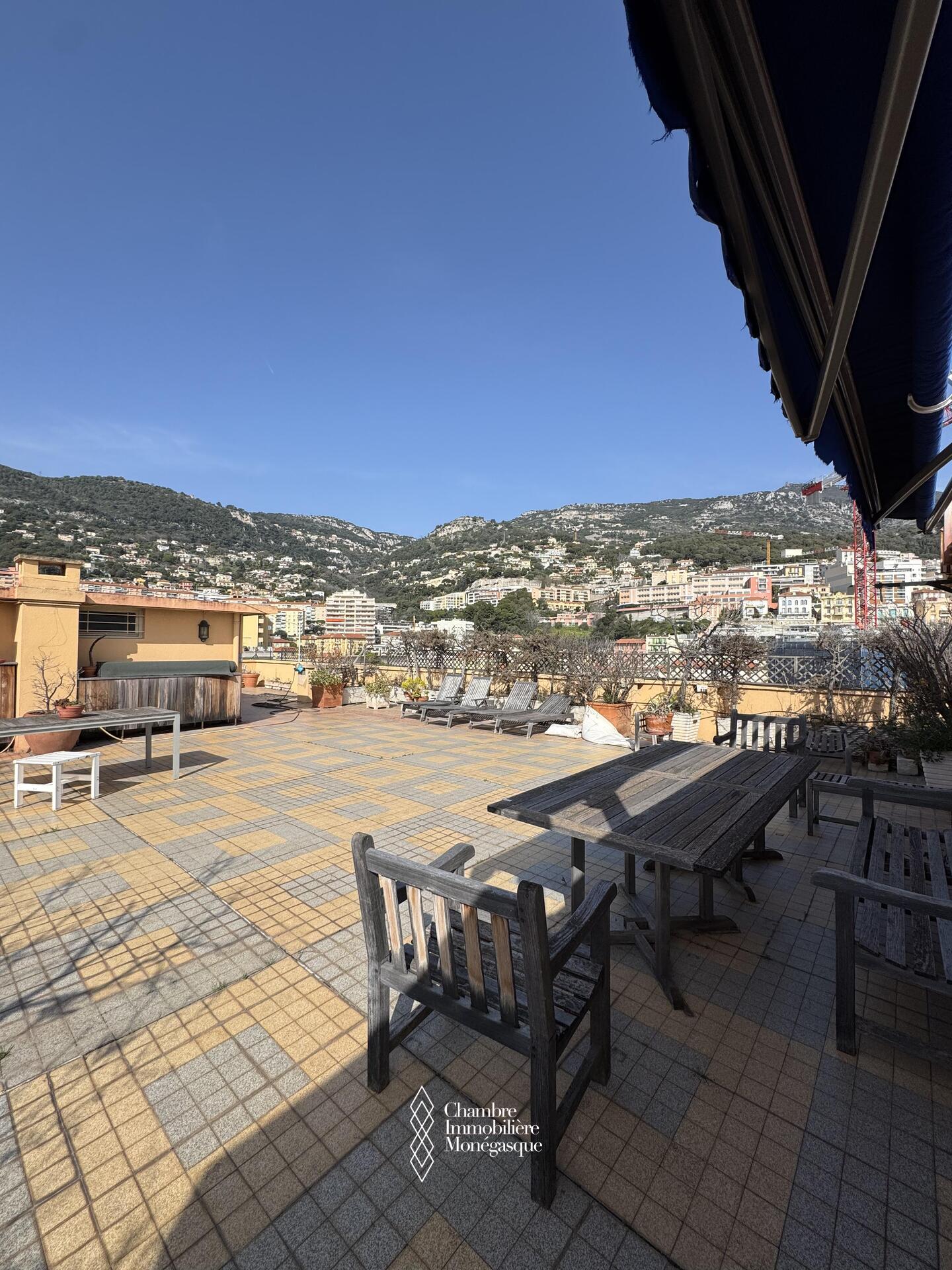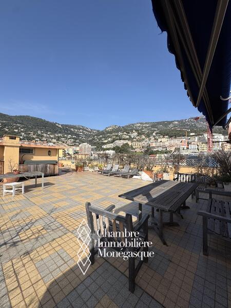 La distribuzione interna include un atrio d'ingresso che conduce a corridoi con guardaroba incorporata. Il soggiorno doppio, con una biblioteca su misura. La grande cucina indipendente completamente attrezzata ha anche una finestra. L'area notte comprende quattro camere da letto con deposito integrato, oltre a un bagno con finestra, una doccia con WC e un bagno per gli ospiti. Al piano superiore, la terrazza privata sul tetto è un vero spazio abitativo all'aperto, ideale per godersi una vista spettacolare su Monaco e la sua costa.