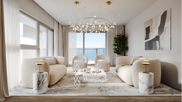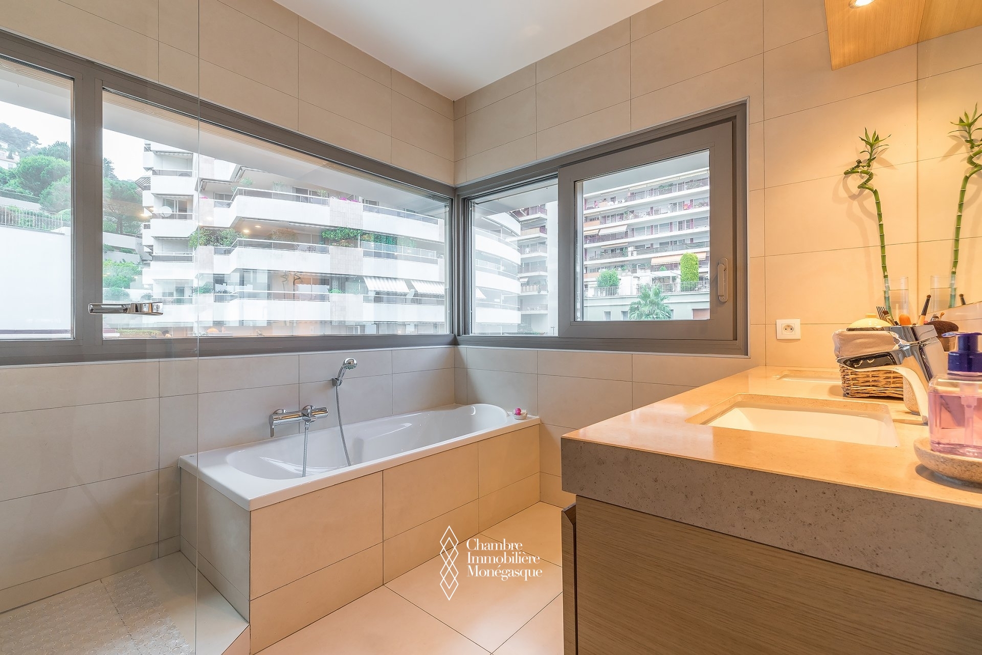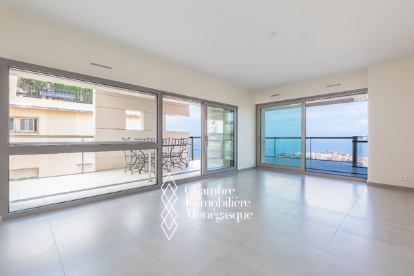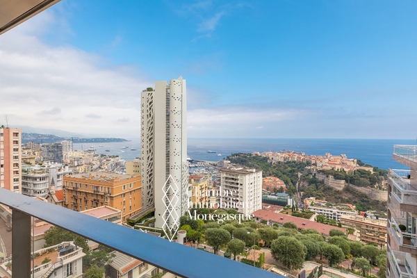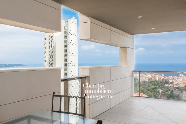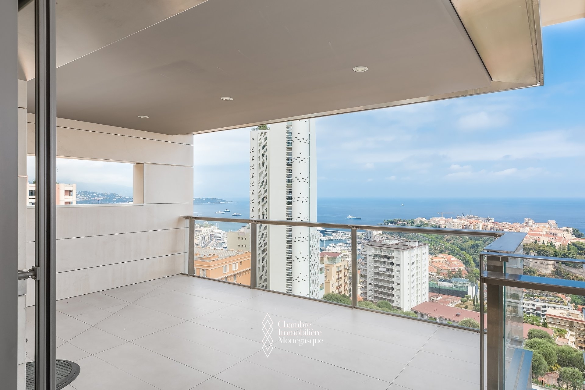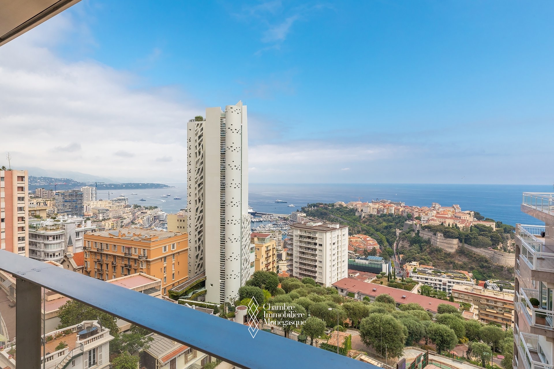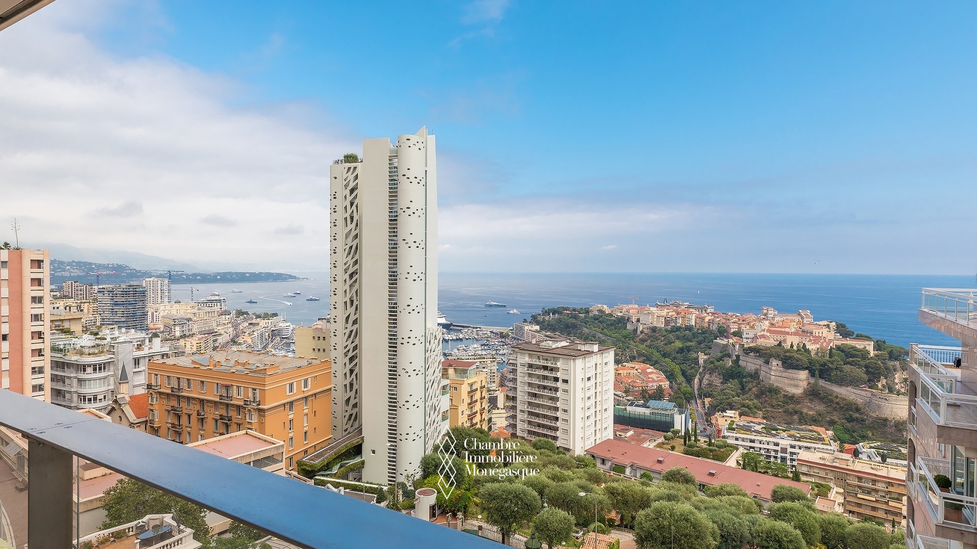 Appartement 3 chambres élégant et traversant, offrant des panoramas exceptionnels sur la Principauté. Situé dans la prestigieuse résidence récente Monte Carlo View, dans le quartier recherché du Jardin Exotique.