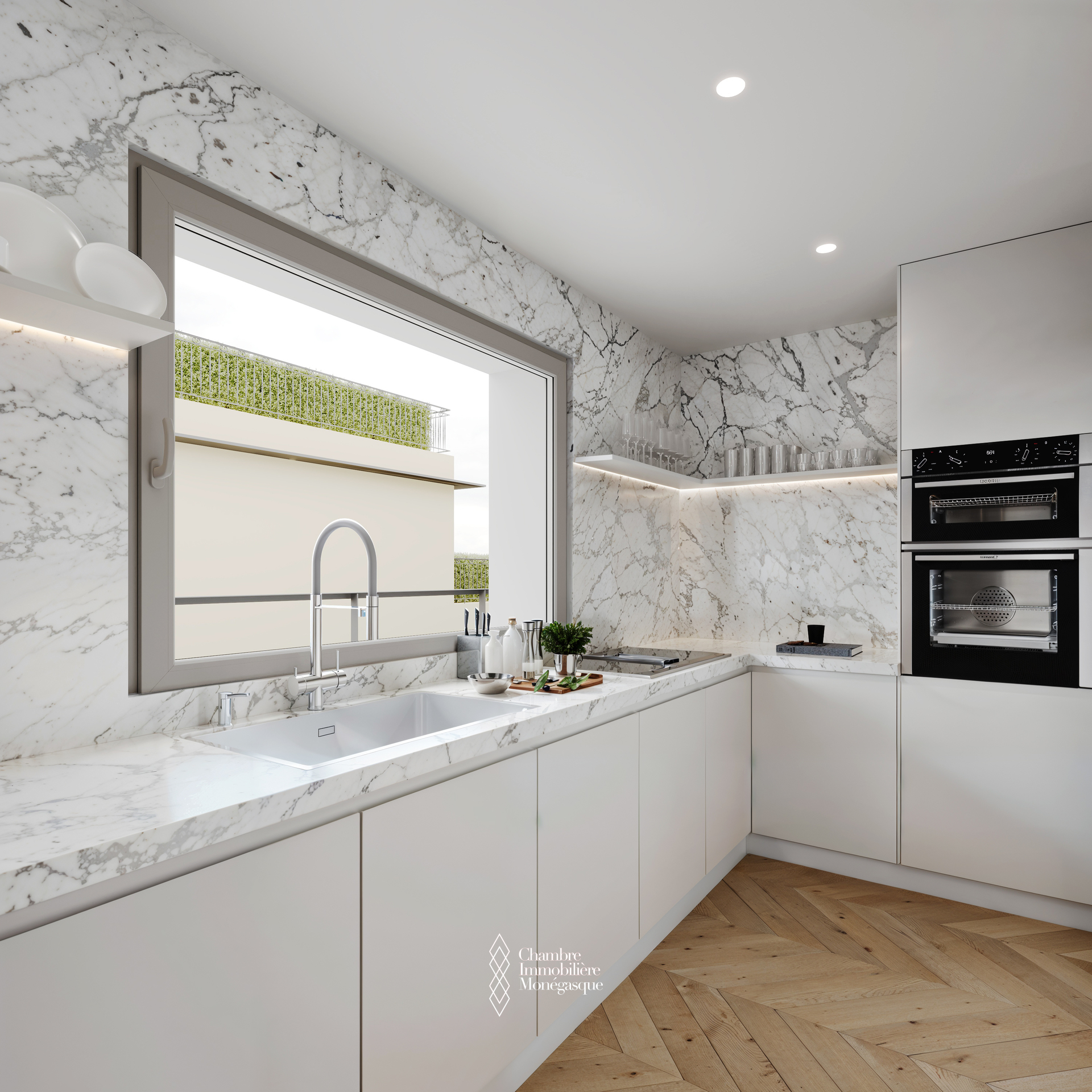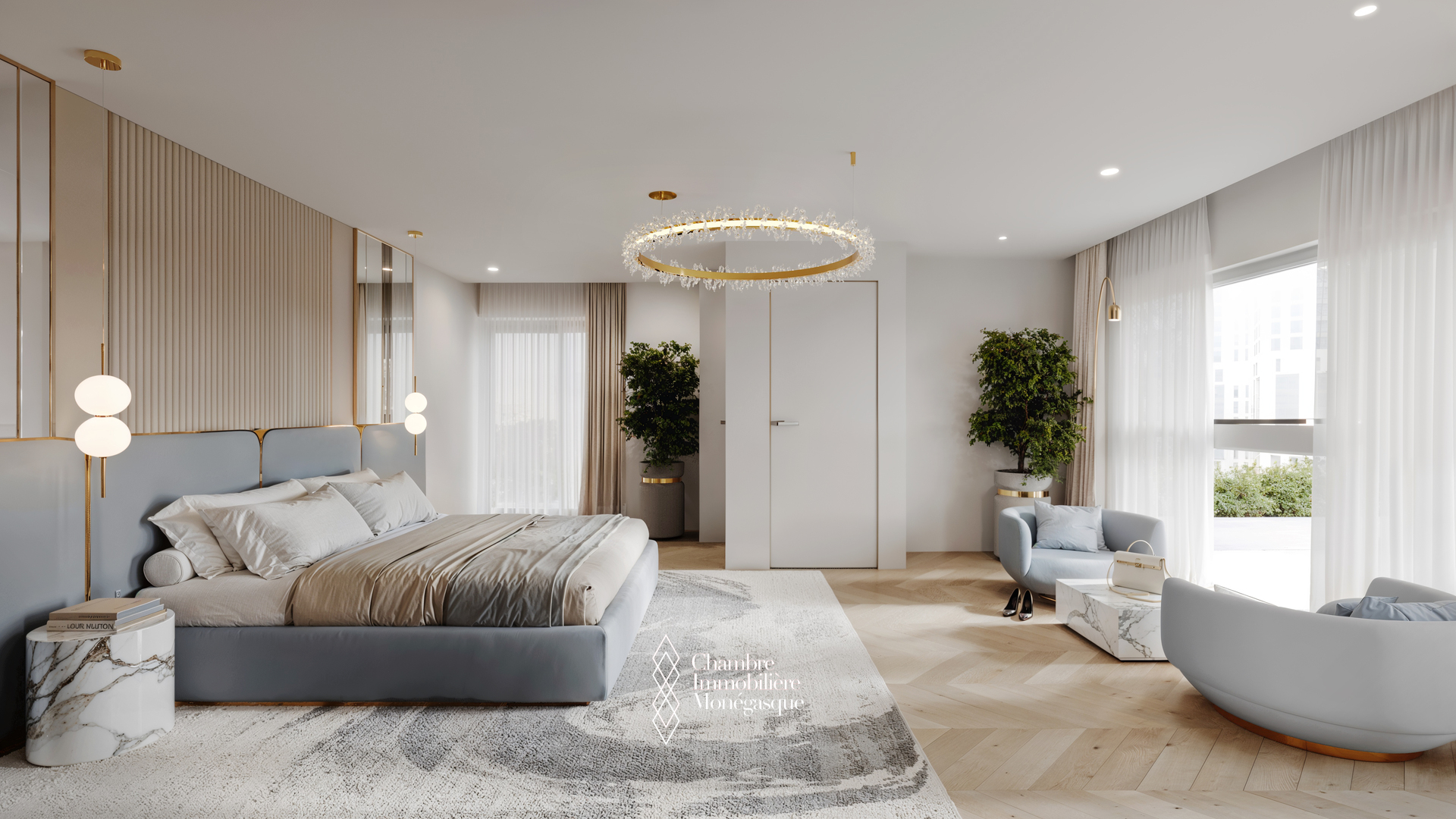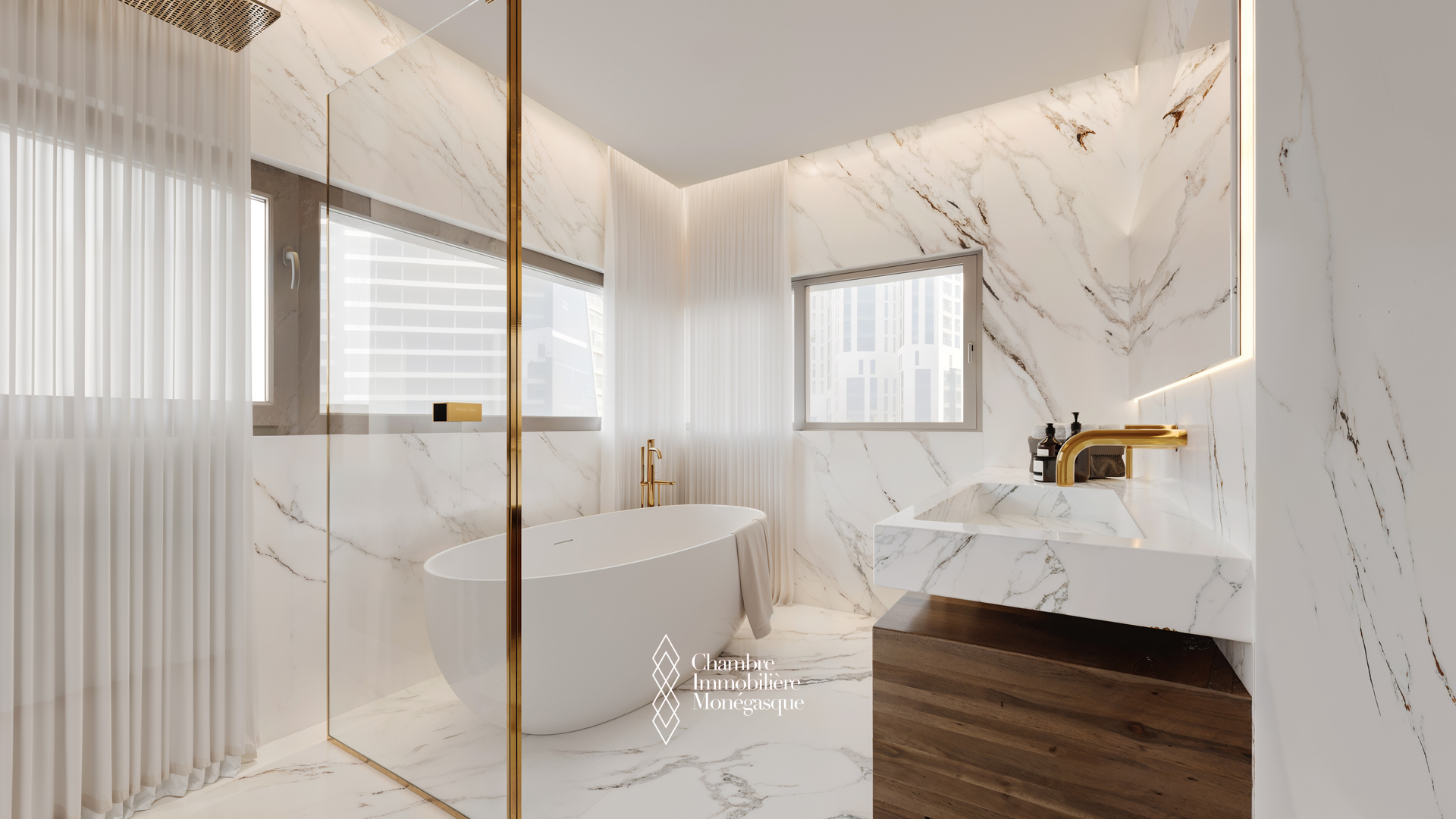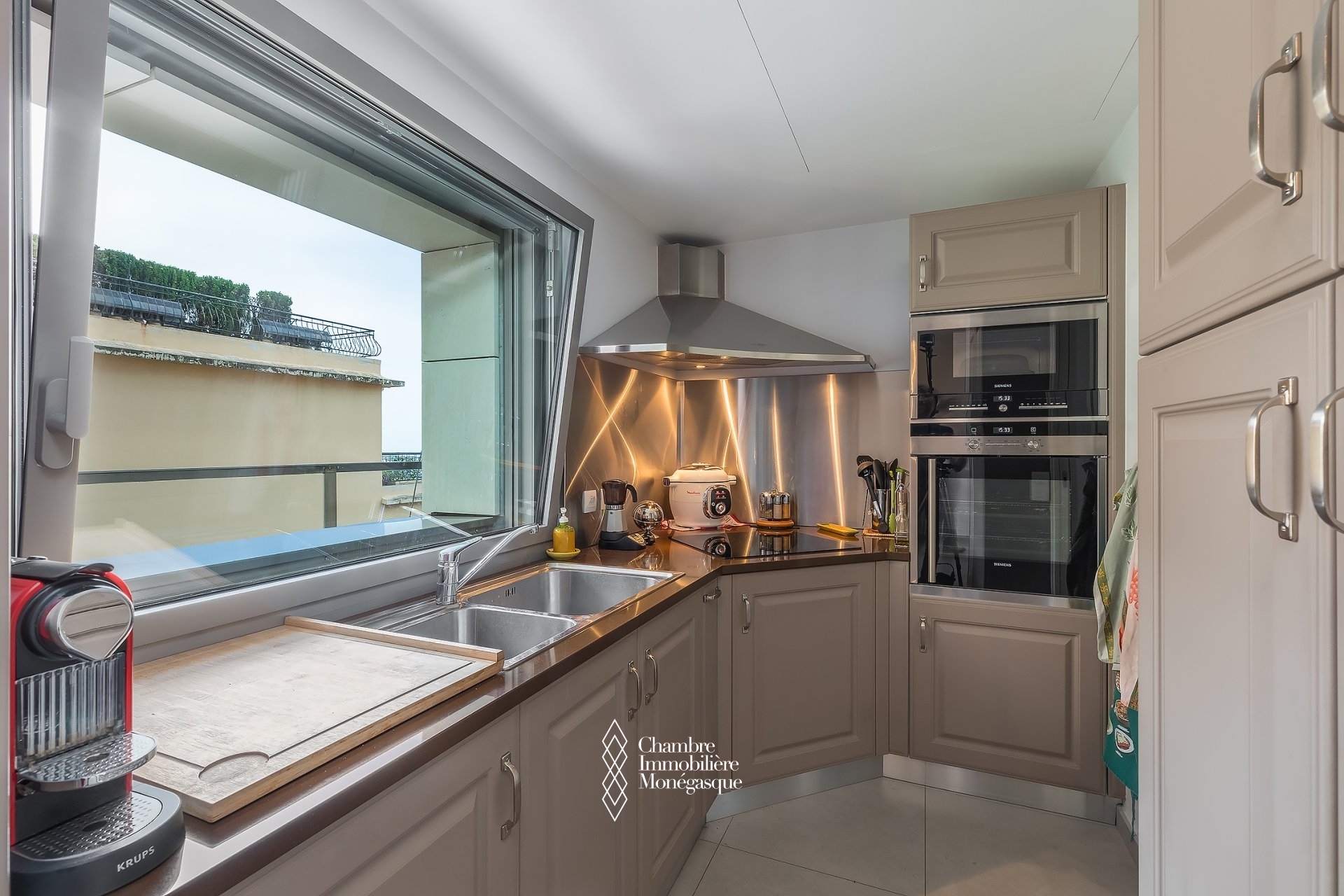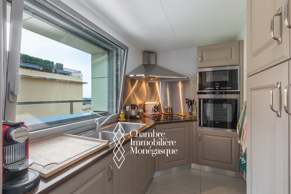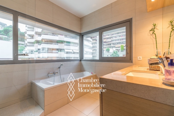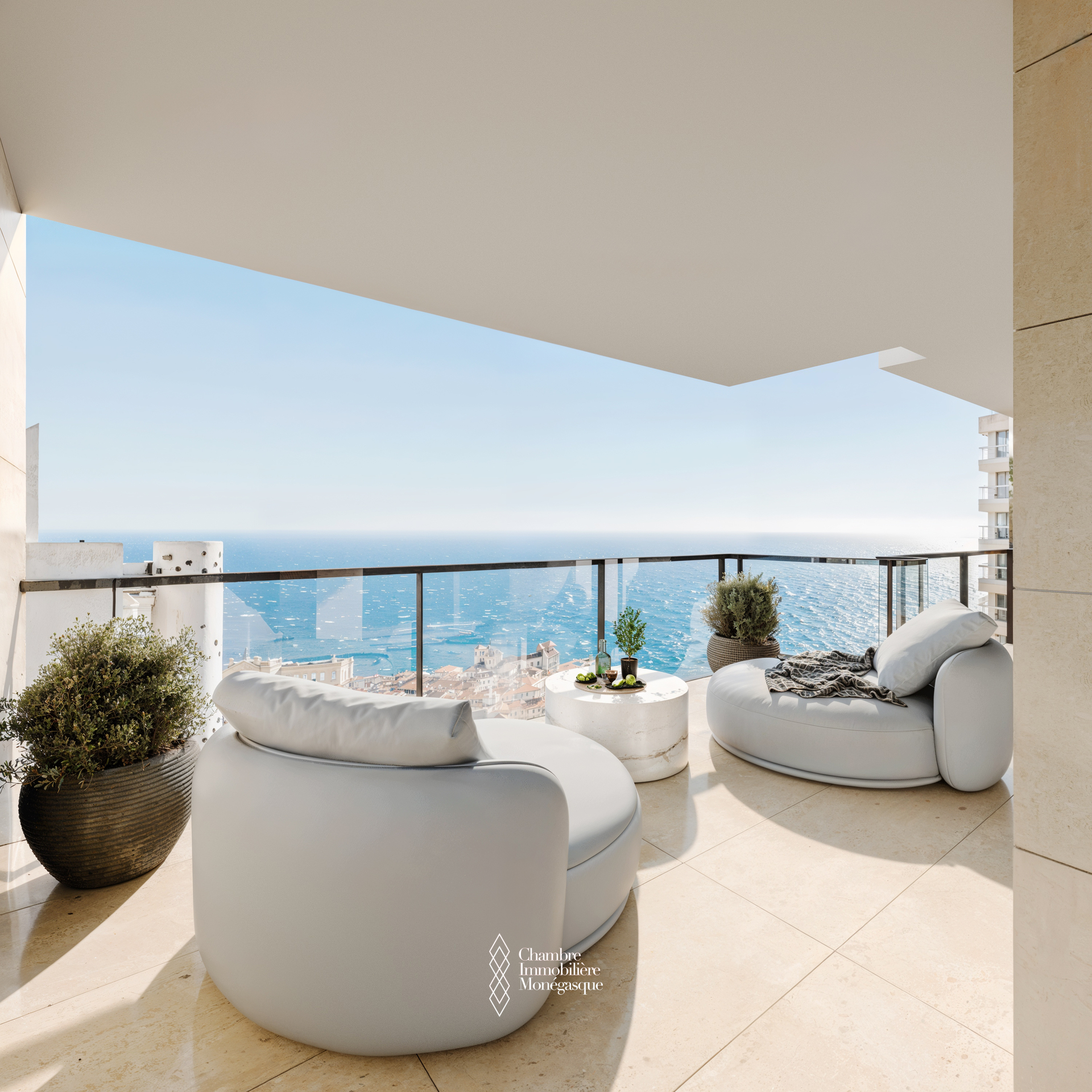 Appartement 3 chambres élégant et traversant, offrant des panoramas exceptionnels sur la Principauté. Situé dans la prestigieuse résidence récente Monte Carlo View, dans le quartier recherché du Jardin Exotique.