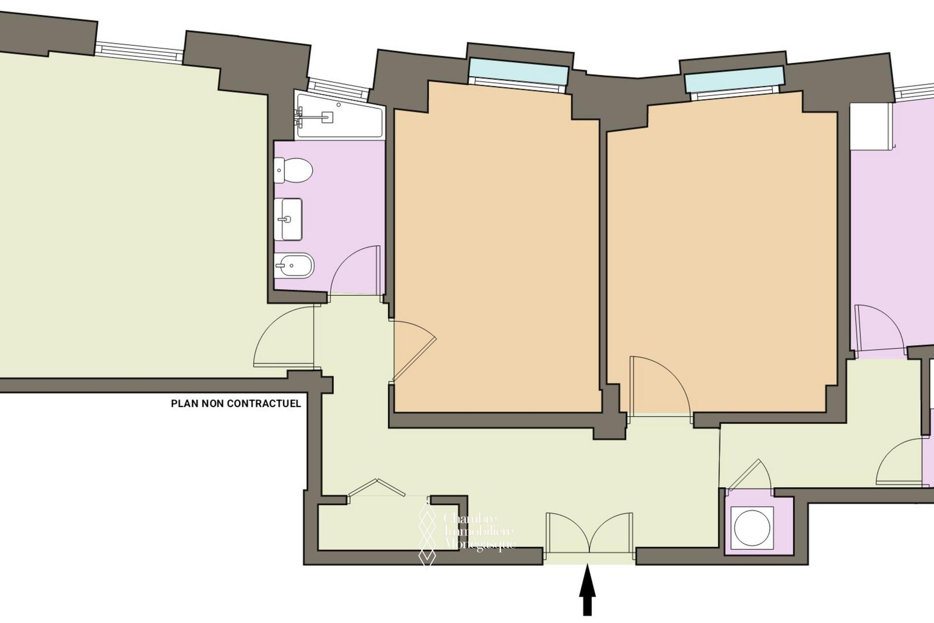 Sotto la legge 887, questo splendido trilocale ristrutturato offre una posizione centrale nel cuore del boulevard des Moulins, vicino a tutti i servizi, negozi e ristoranti.