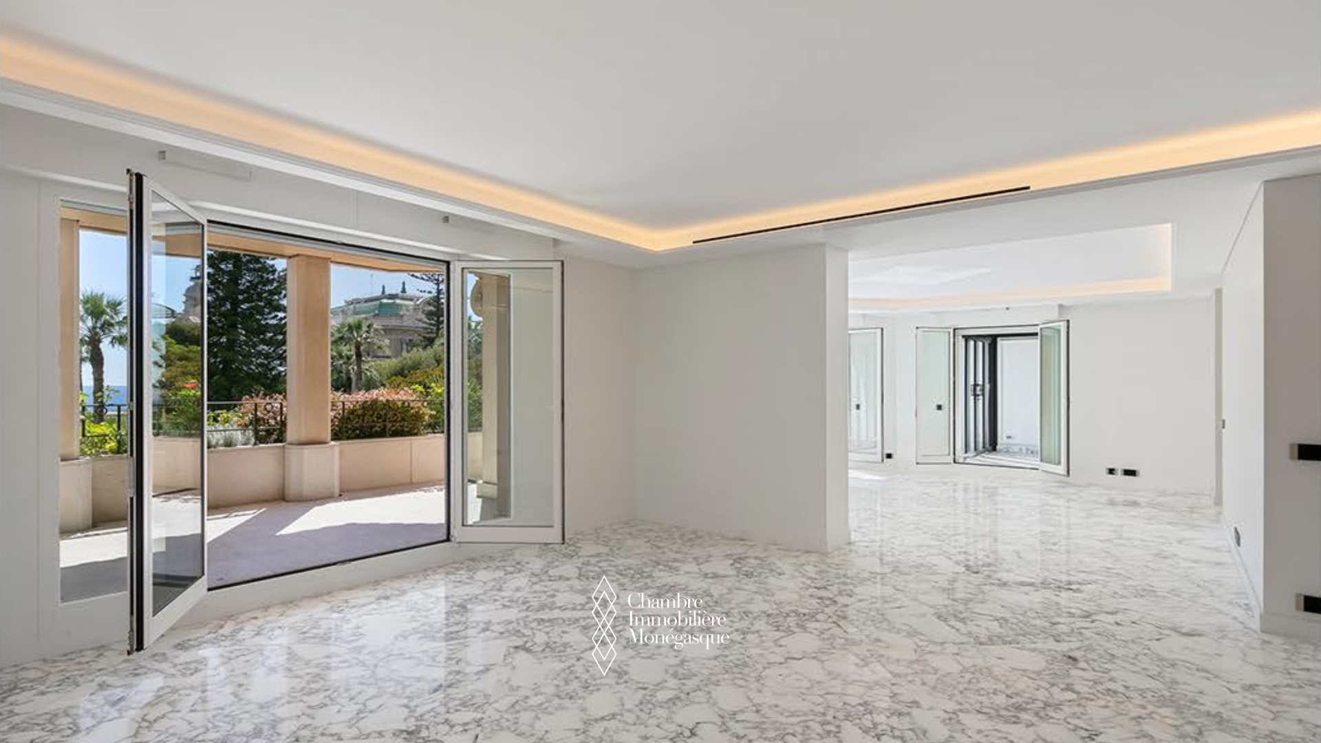 Questa proprietà d’eccezione offre un ampio soggiorno luminoso, aperto su una terrazza con una vista mozzafiato sul Casinò, oltre a un elegante giardino d’inverno con camino, anch’esso prolungato da uno spazio esterno. La cucina, completamente attrezzata, presenta finiture di alto livello. Le camere, situate sul lato cortile, garantiscono assoluta tranquillità e dispongono ciascuna di bagno privato e armadi integrati.