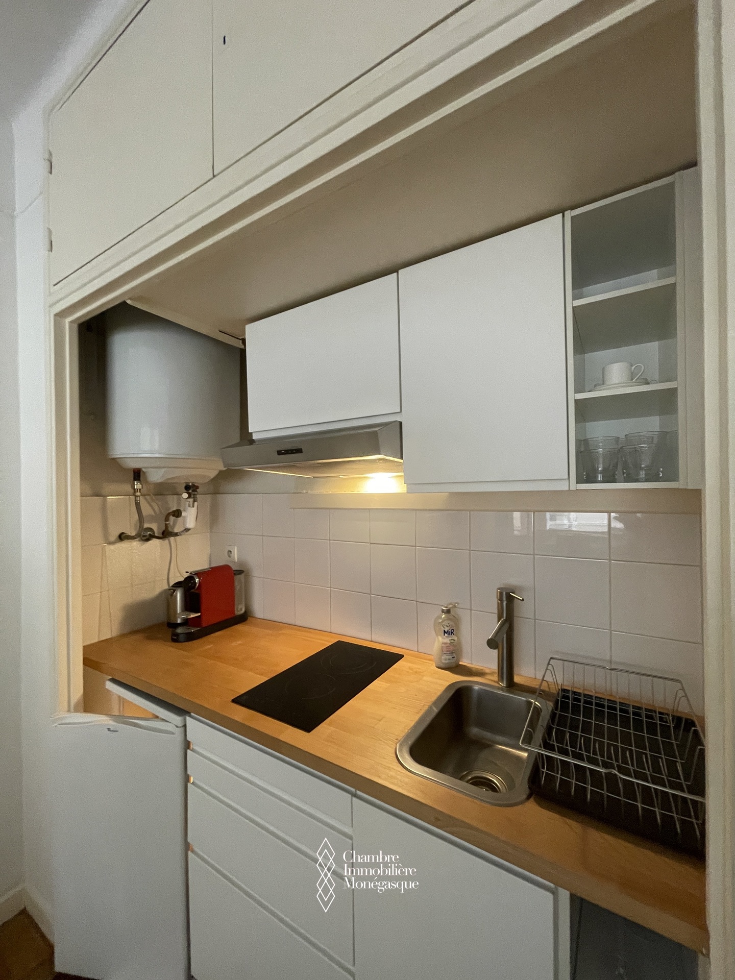 In un edificio situato in Place des Moulins, vicino a negozi, ascensori pubblici e trasporti pubblici, questo grande monolocale di circa 30m2 è composto da: