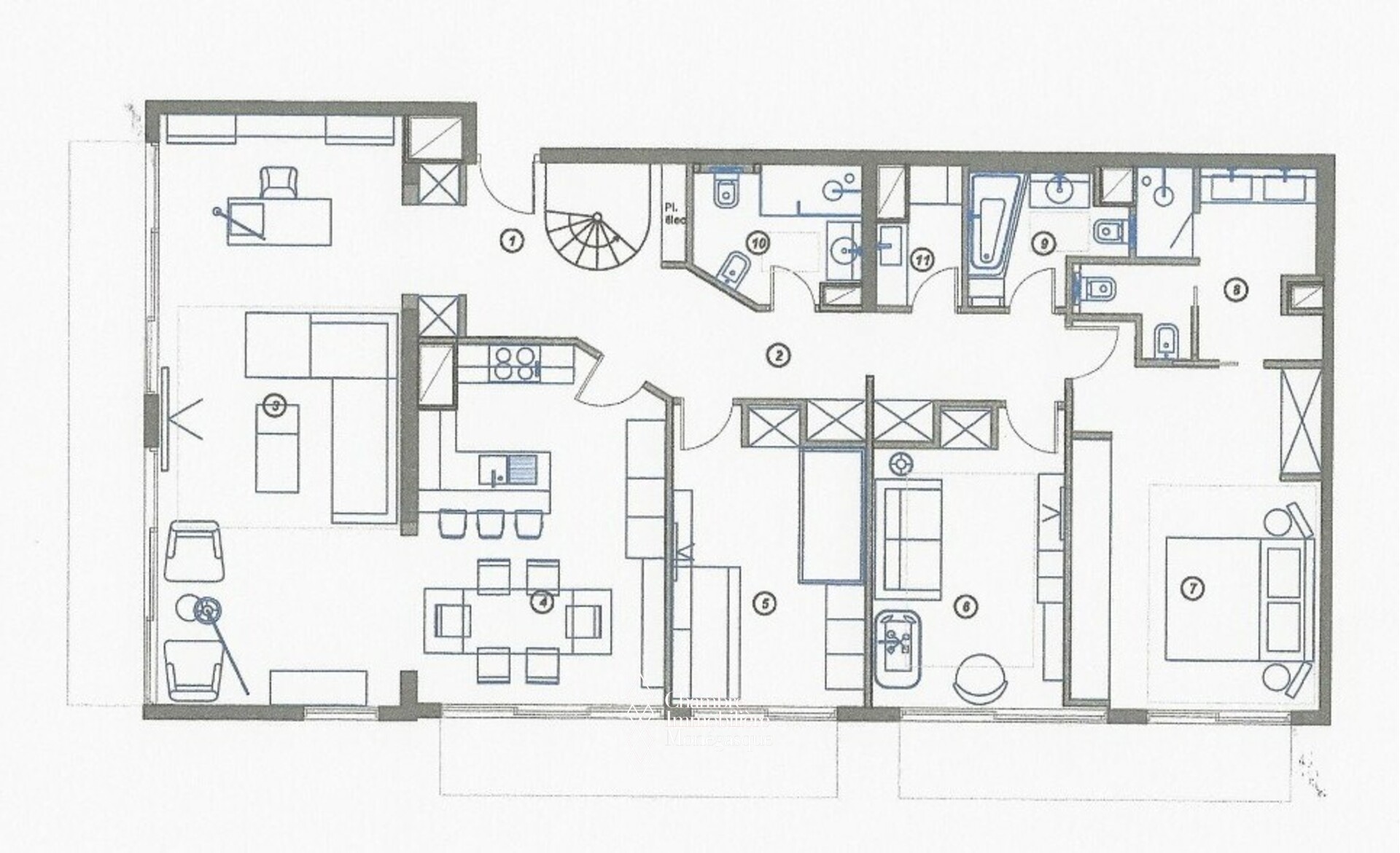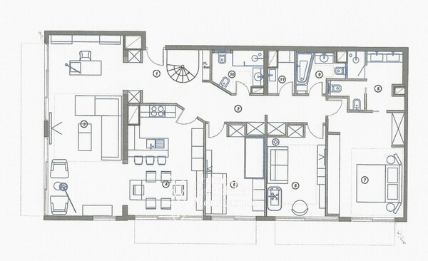 Attico completamente ristrutturato 3 Camere da letto/1 Ampio soggiorno/terrazzi - primo livello 8° piano: 199 mq 1 camera da letto o ufficio con bagno/salotto/cucina/giardino tropicale - 2° livello 9° piano: 220 mq